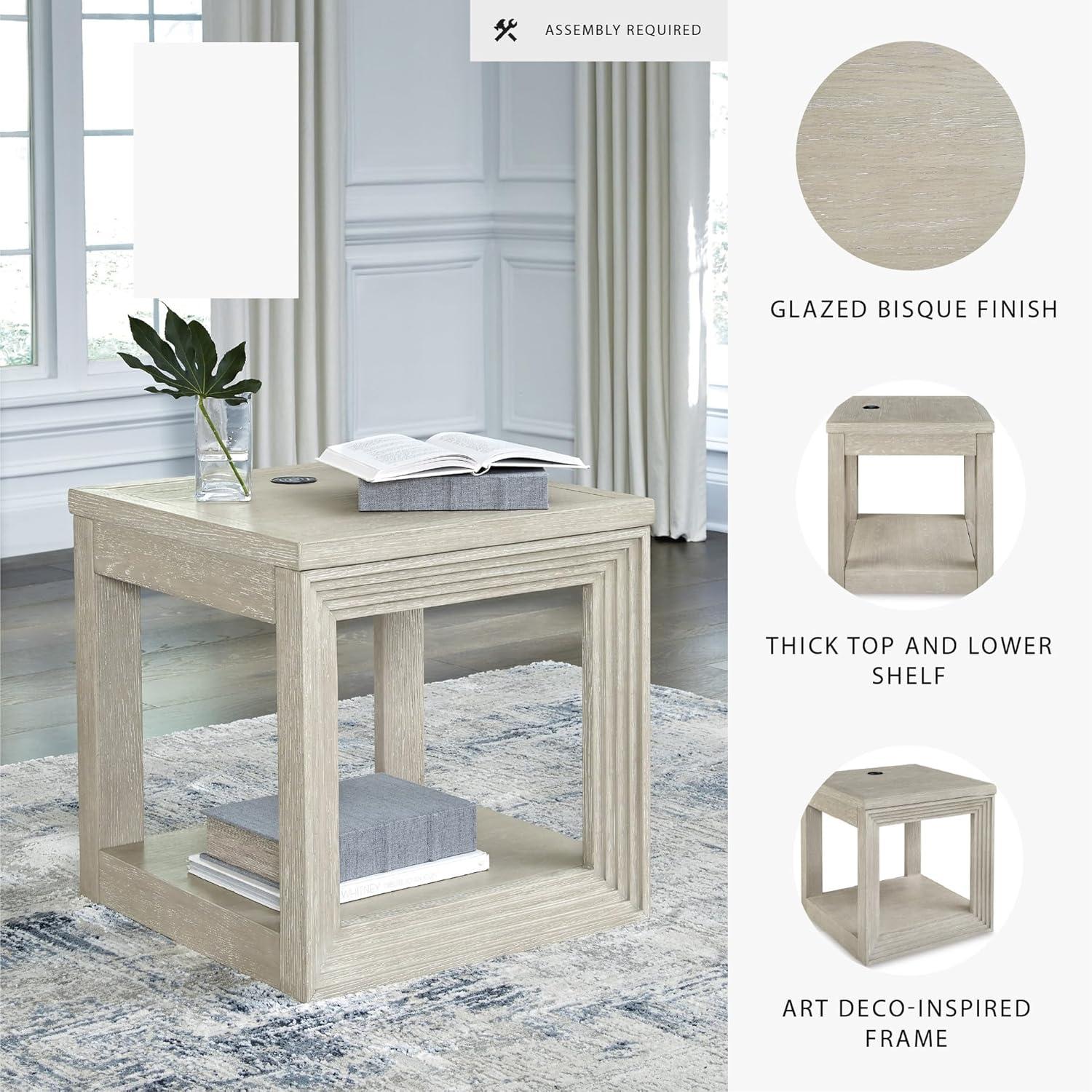 Transitional design takes on a contemporary look with this end table. Its trend-right glazed bisque finish elevates your interior space with a clean, modern palette. Add decor to the lower shelf and soak in all of the style. Convenient wireless charging makes this table a modern masterpiece.