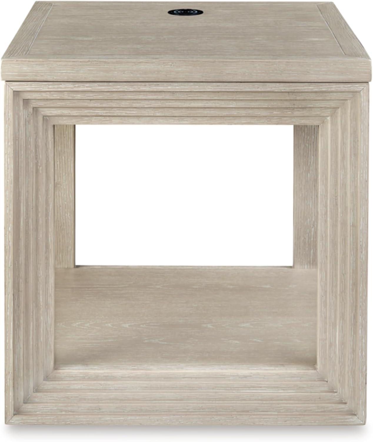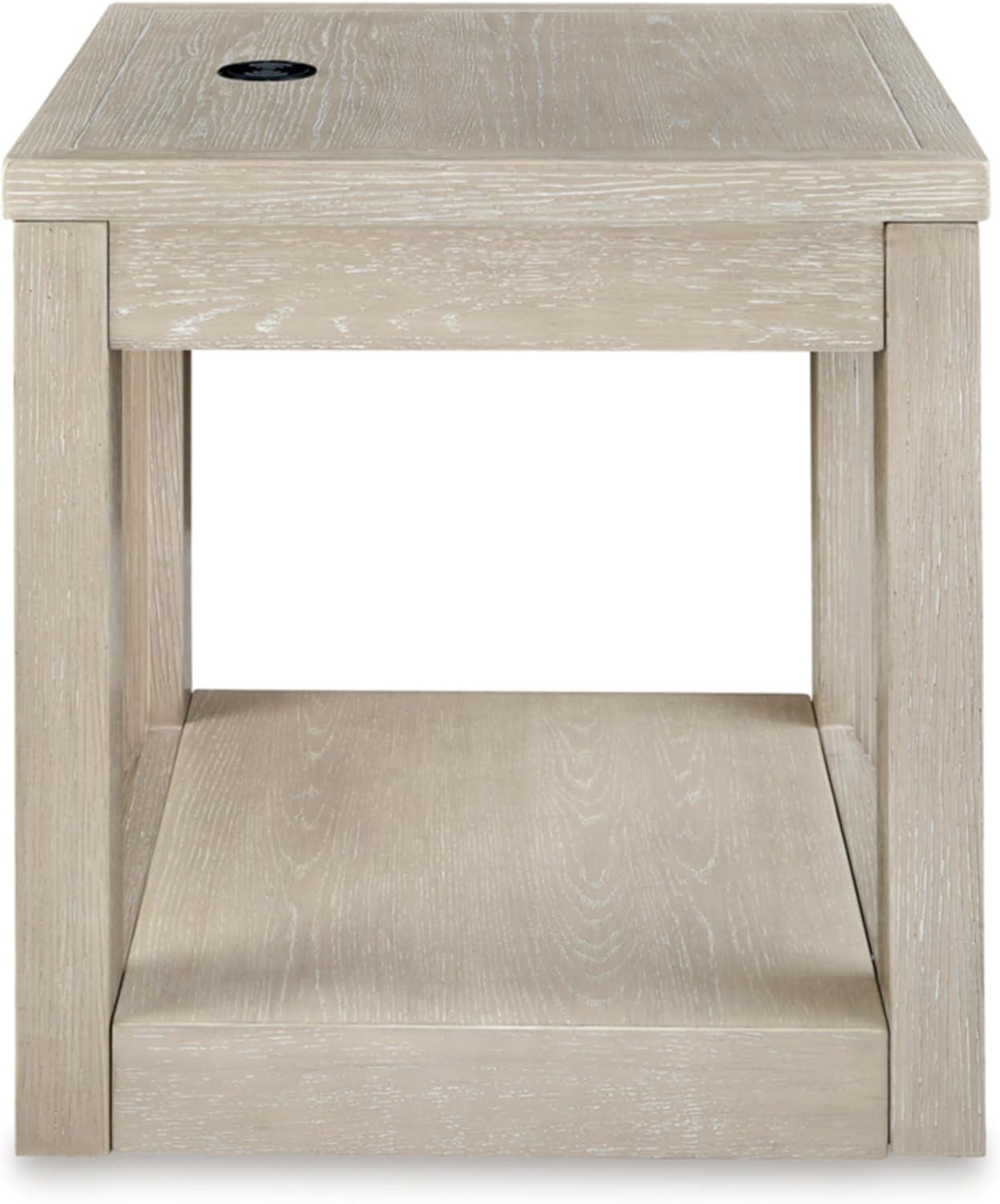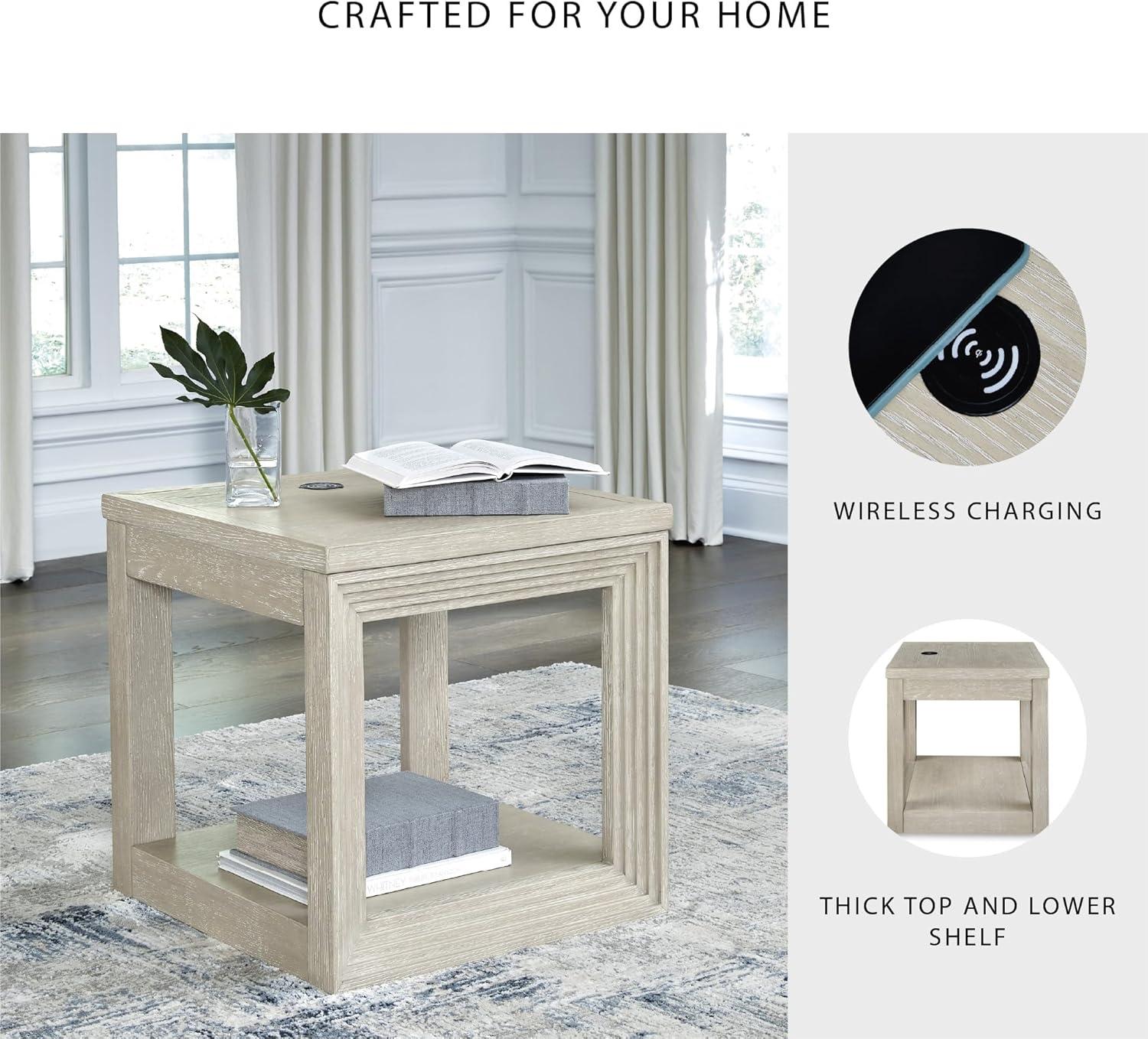 Signature Design by Ashley Marxhart Transitional End Table with Lower Shelf and Wireless Charging, Light Brown