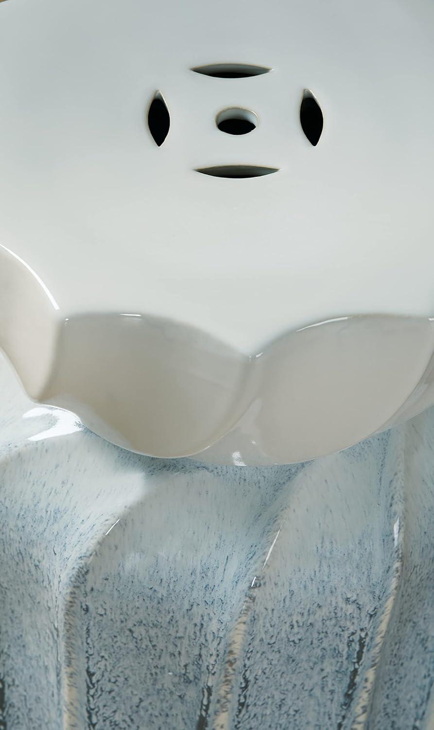 Signature Design by Ashley Michamere Coastal Ceramic Indoor & Outdoor Accent Stool, Gray & Beige