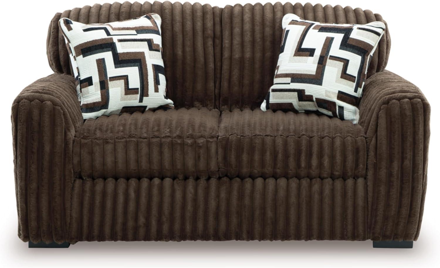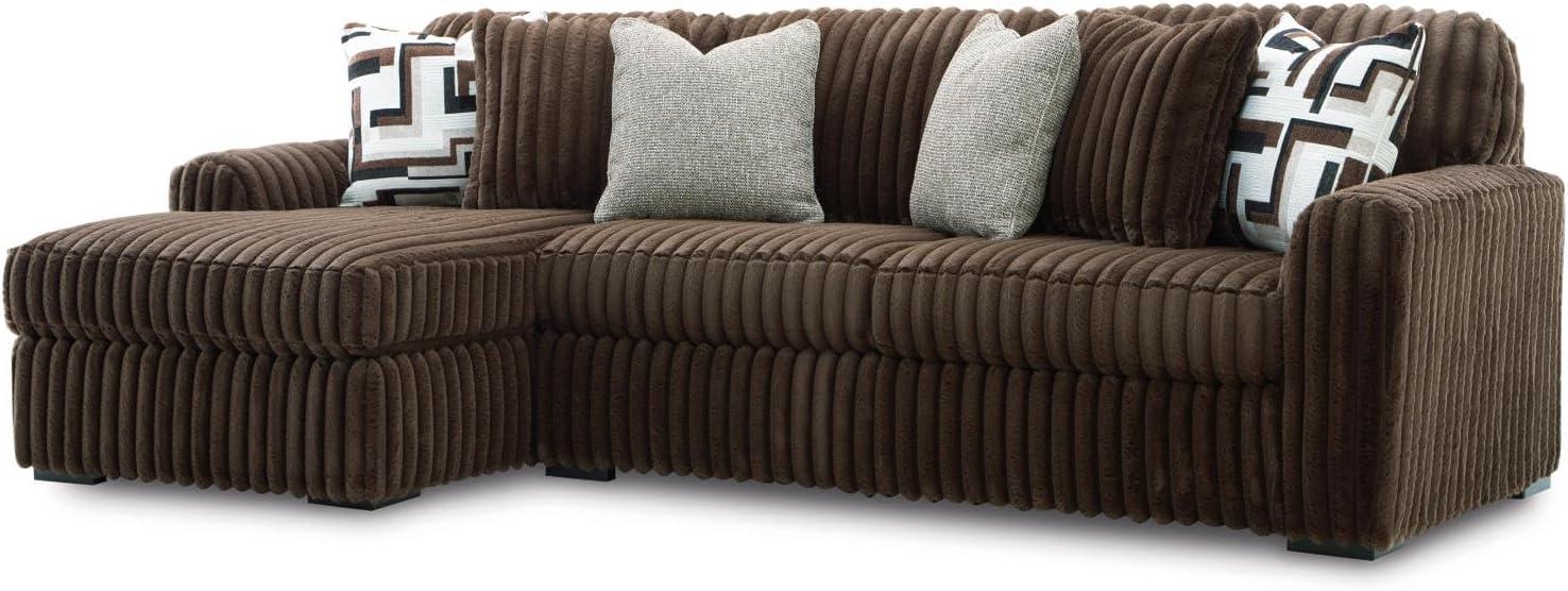 Signature Design by Ashley Midnight-Madness Contemporary Oversized Chaise with Reversible Cushions, USB Ports and Cup Holders, Dark Brown(Brown)
