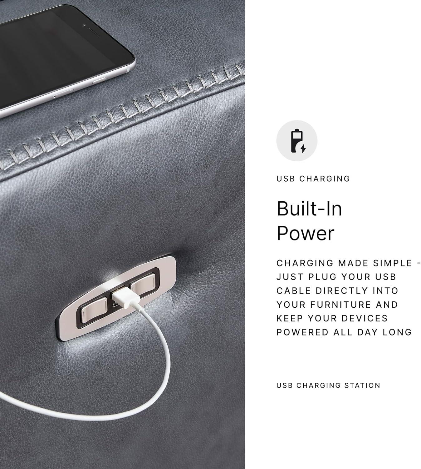 QUALITY MADE: One-touch power control, adjustable headrest & USB ports. Comfortable and durable foam cushions. 100% top grain leather on inside areas; matched faux leather on remaining areas. Console with storage and 2 cup holders