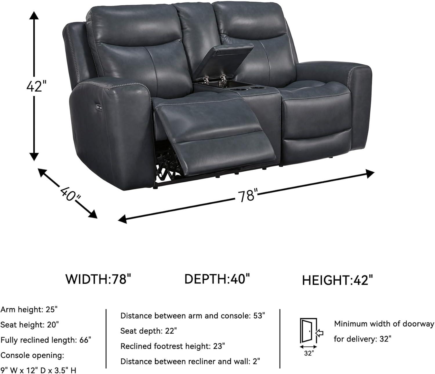 DIMENSIONS: Measures 78″ W x 40″ D x 42″ H. Seat height: 20″. Reclined footrest height: 23″. Fully reclined length: 66″. Distance between recliner and wall should be at least 2″. Minimum width of doorway for delivery: 32″
