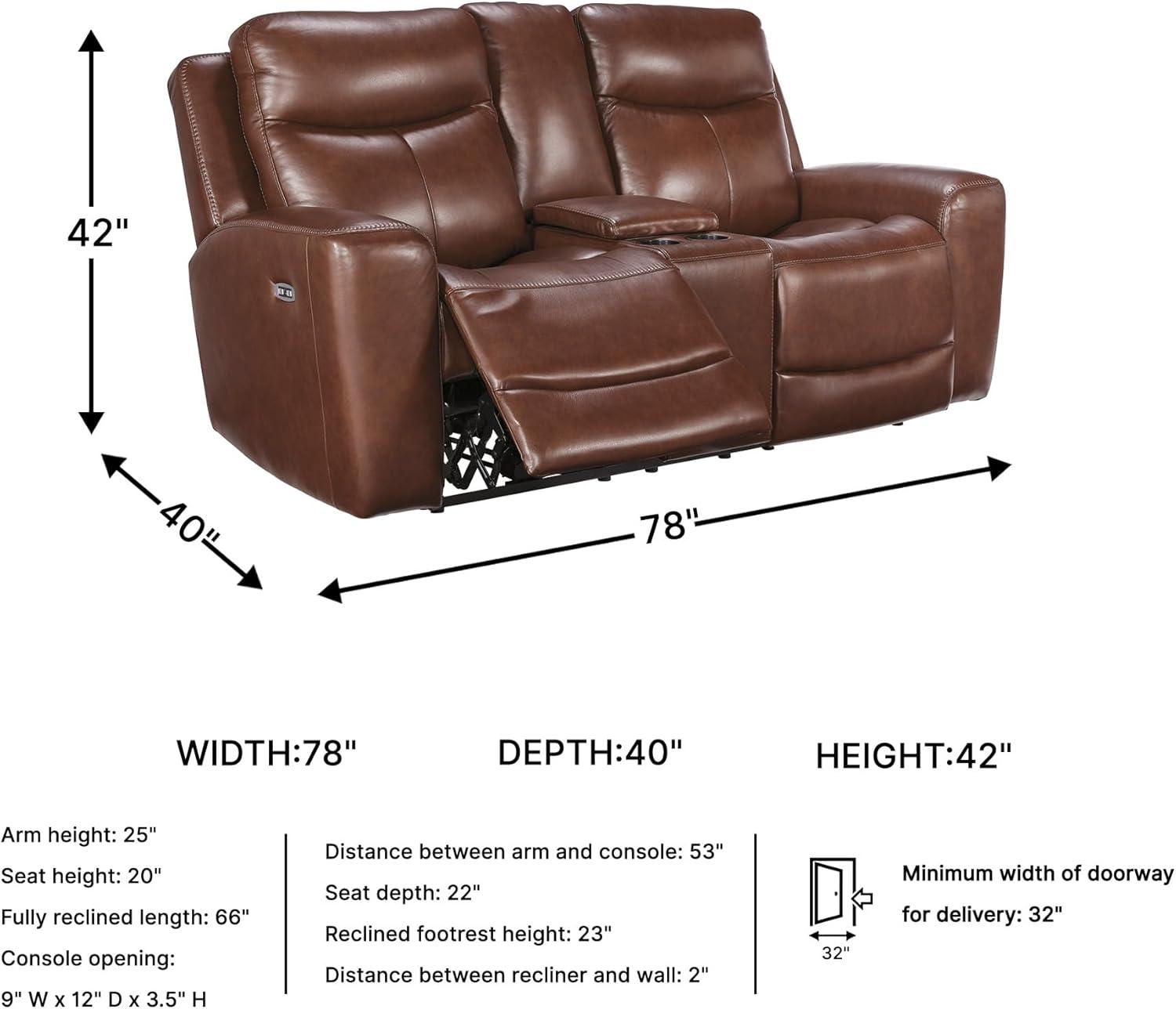 DIMENSIONS: Measures 78″ W x 40″ D x 42″ H. Fully reclined length: 66″. Distance between recliner and wall: 2″. Minimum width of doorway for delivery: 32″