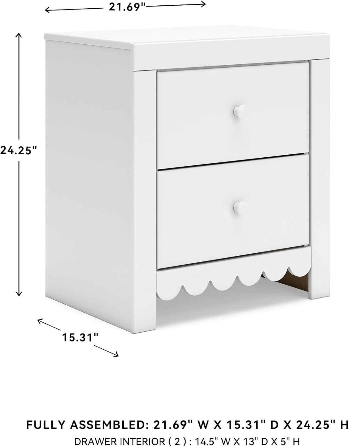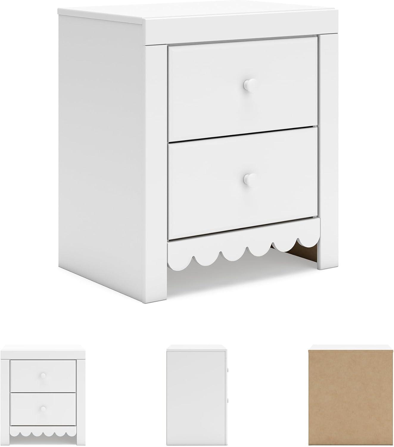 Signature Design by Ashley Mollviney Minimalist 2 Drawer Nightstand with USB Ports, 24.25″ Tall, White(White Scallop)