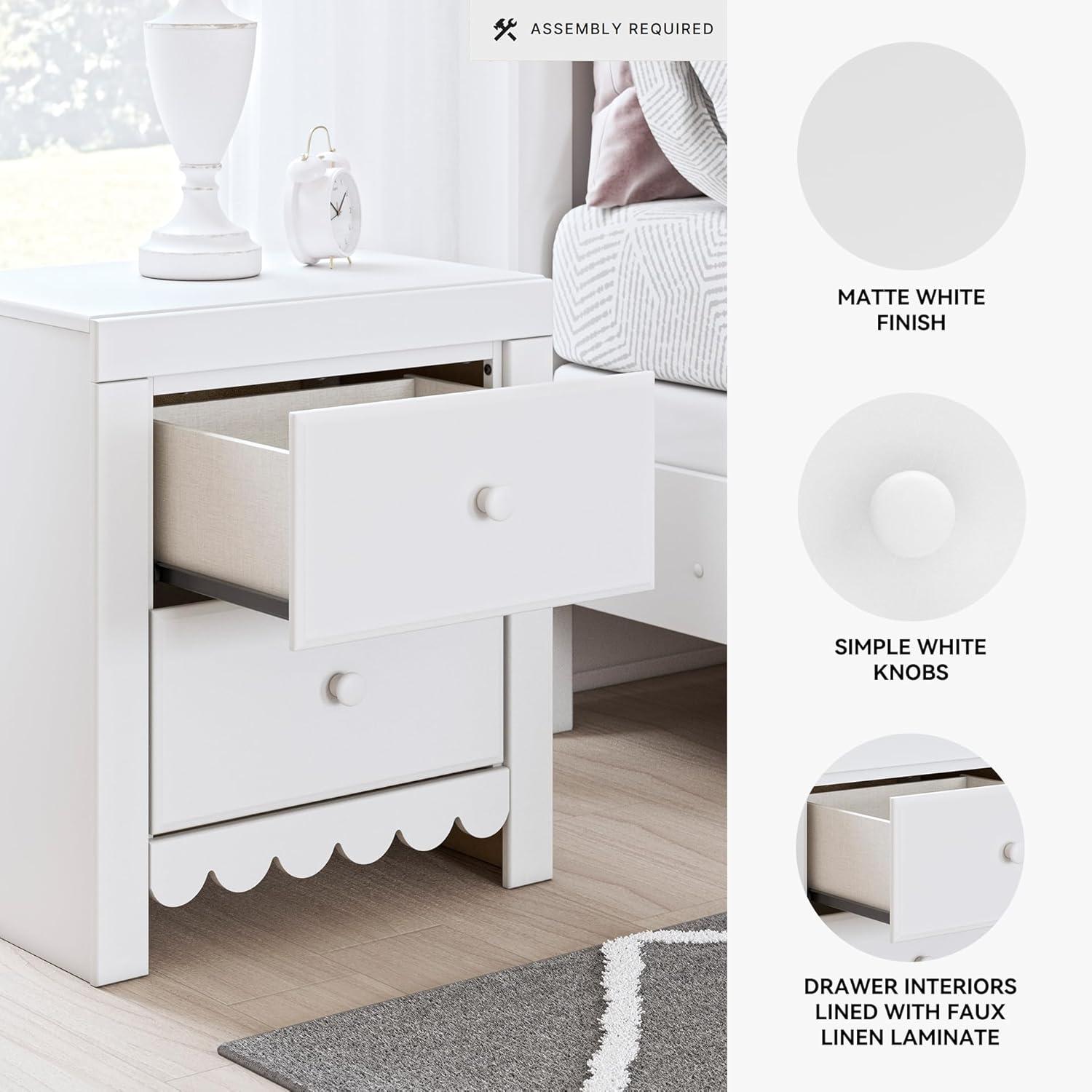 Make waking up or bedtime that much more magical with this nightstand. Charmingly cute with its scalloped detailing, it appeals to both her sense of playful whimsy and your love for modern design. The nightstand's included USB charging keeps devices or nightlights powered up. And its crisp white finish gives you the versatility to pair it with existing decor.