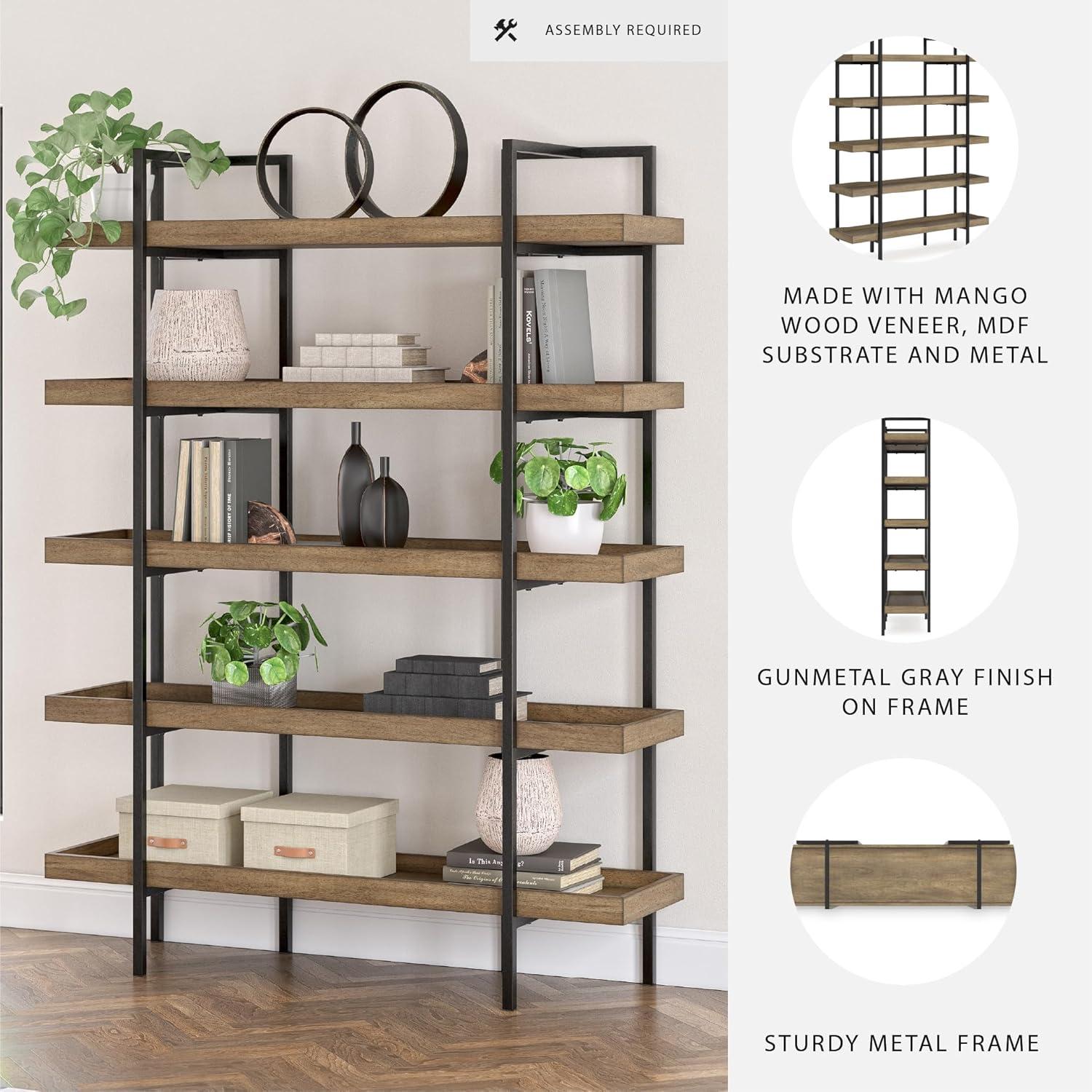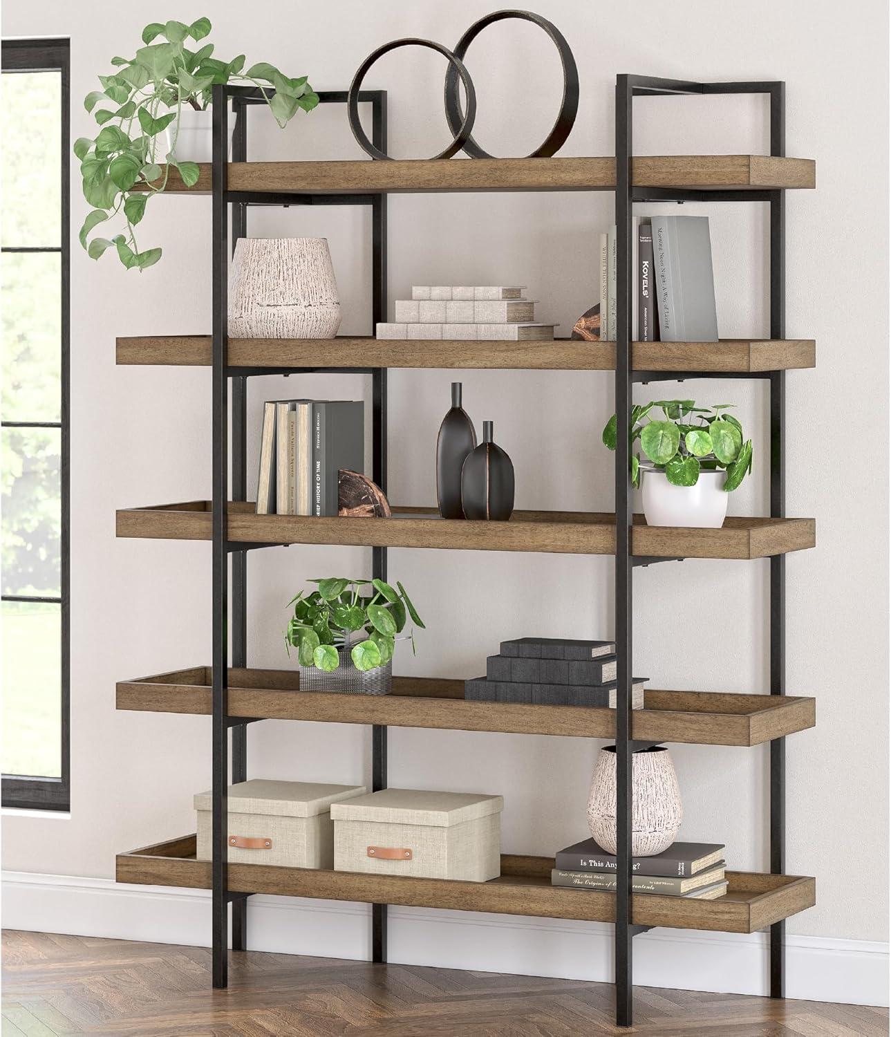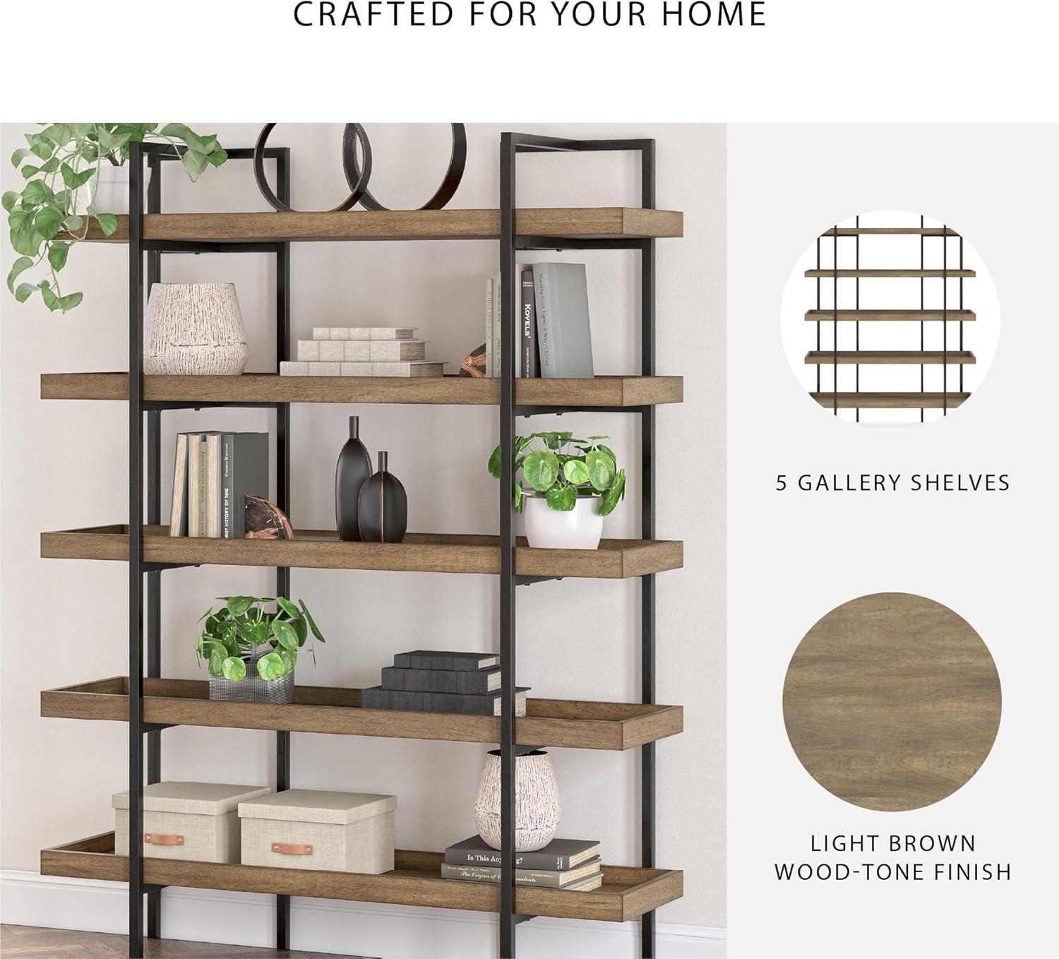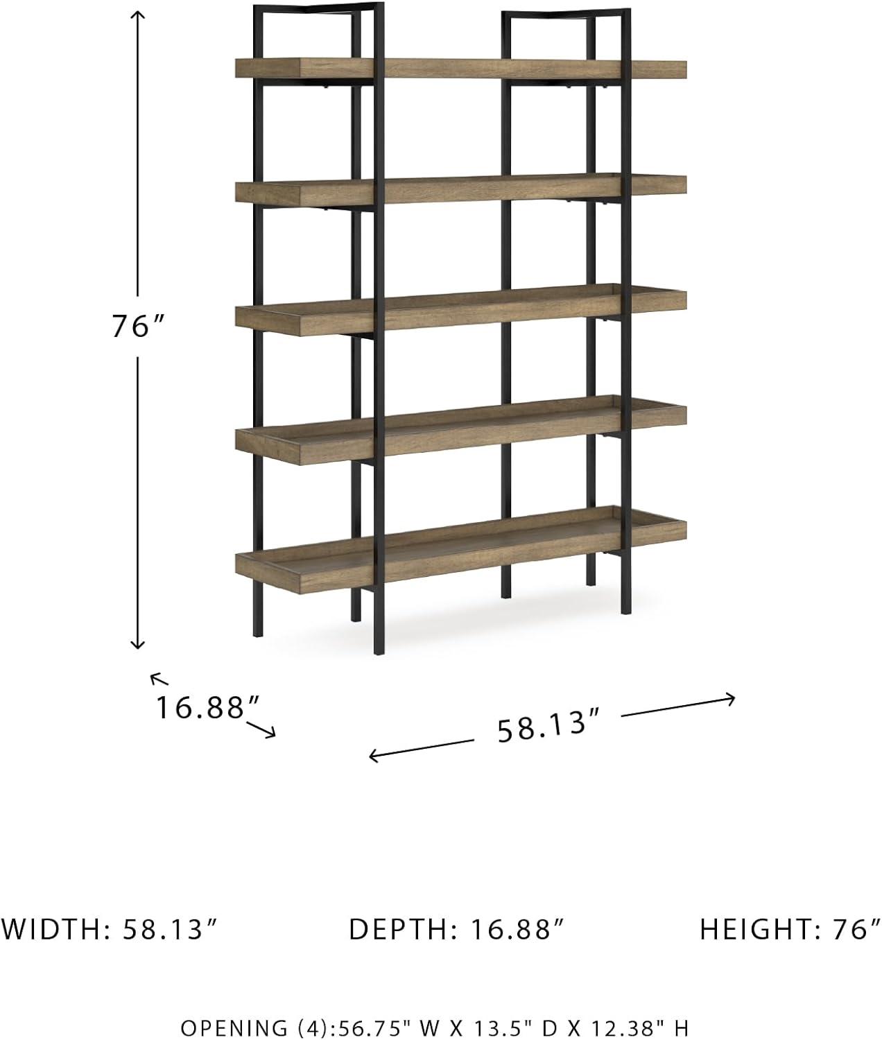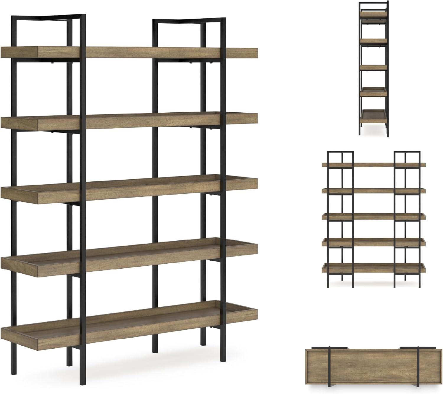 Signature Design by Ashley Montia Industrial Freestanding 5-Tier 76″ Etagere Bookcase, Light Brown