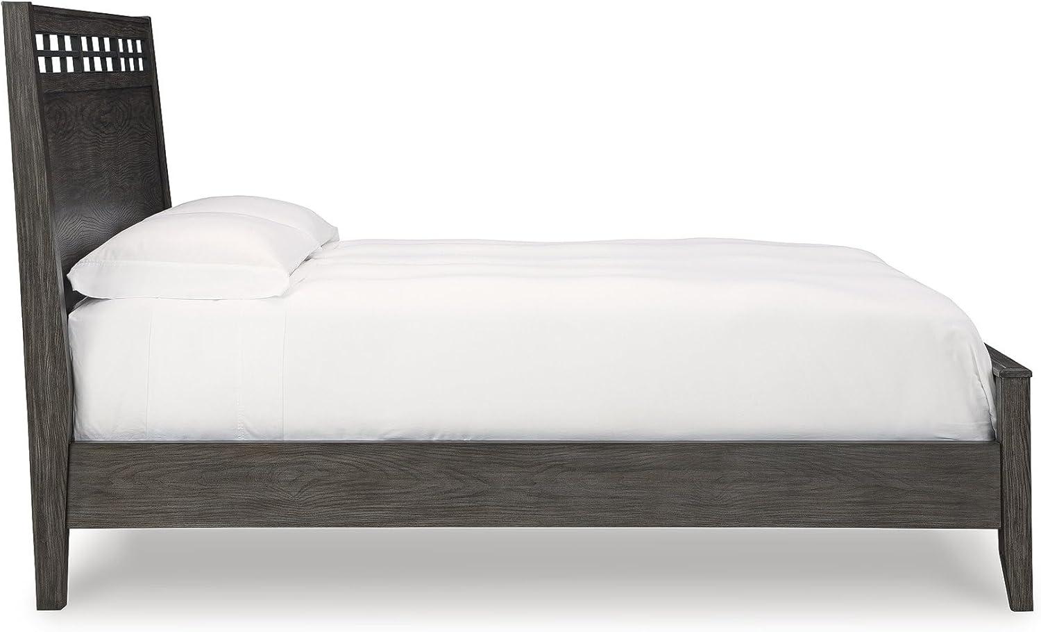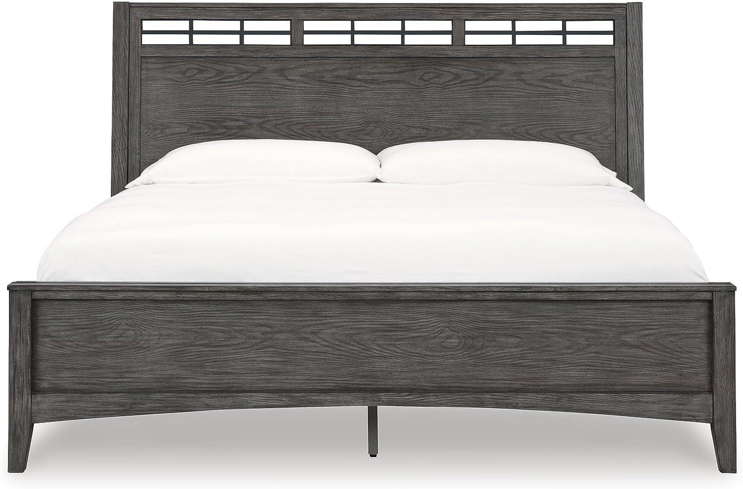Signature Design by Ashley Montillan Contemporary King Panel Bed with Lay-Back Headboard, Foundation or Box Spring Needed, Dark Brown(California King Panel Bed)