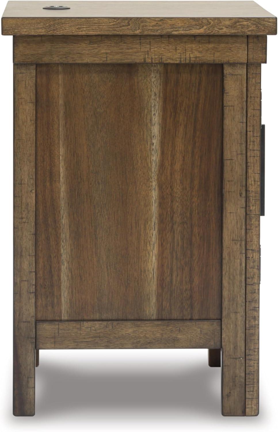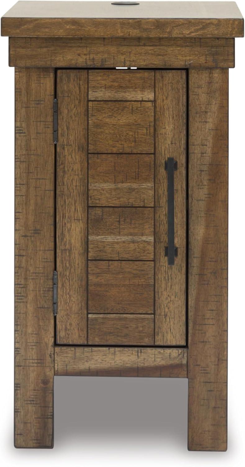 Signature Design by Ashley Moriville Rustic Farmhouse End Table with 1 Cabinet Door and USB Ports, Brown(Brown)