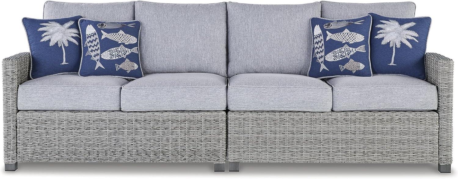 Signature Design by Ashley Naples Beach Curved Coastal 3-Piece Outdoor Sectional with Cushion and 6 Throw Pillows, Light Gray(Loveseat)