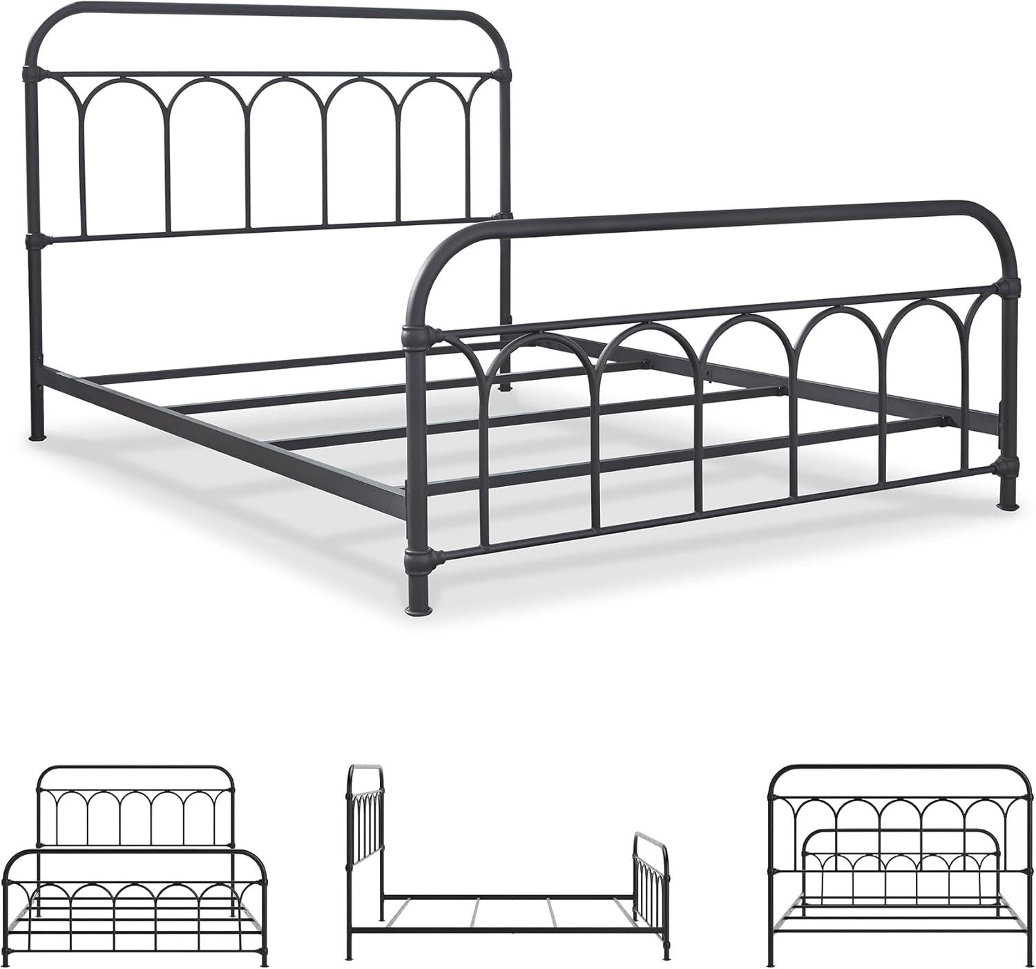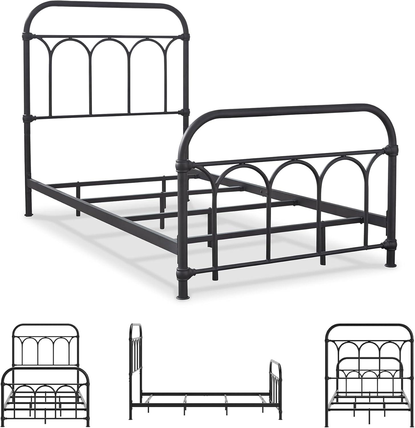 Looking to bring back a sense of bygone charm? Dream it, live it with this queen metal bed. Matte black frame with moulded “fittings” brilliantly mimics wrought-iron beds from yesteryear for a look that’s perfect for your modern farmhouse or cottage-quaint escape. When searching for bed frames, look no further than our wide selection and value. Give your mattress an instant upgrade with showstopping headboards and sleek frames that even have storage options. From neutral shades to bold lighting, our bed frames pack a punch of character that’s sure to instantly elevate your room into a suite. And we go the extra mile to package, protect and deliver your purchase in a timely manner.