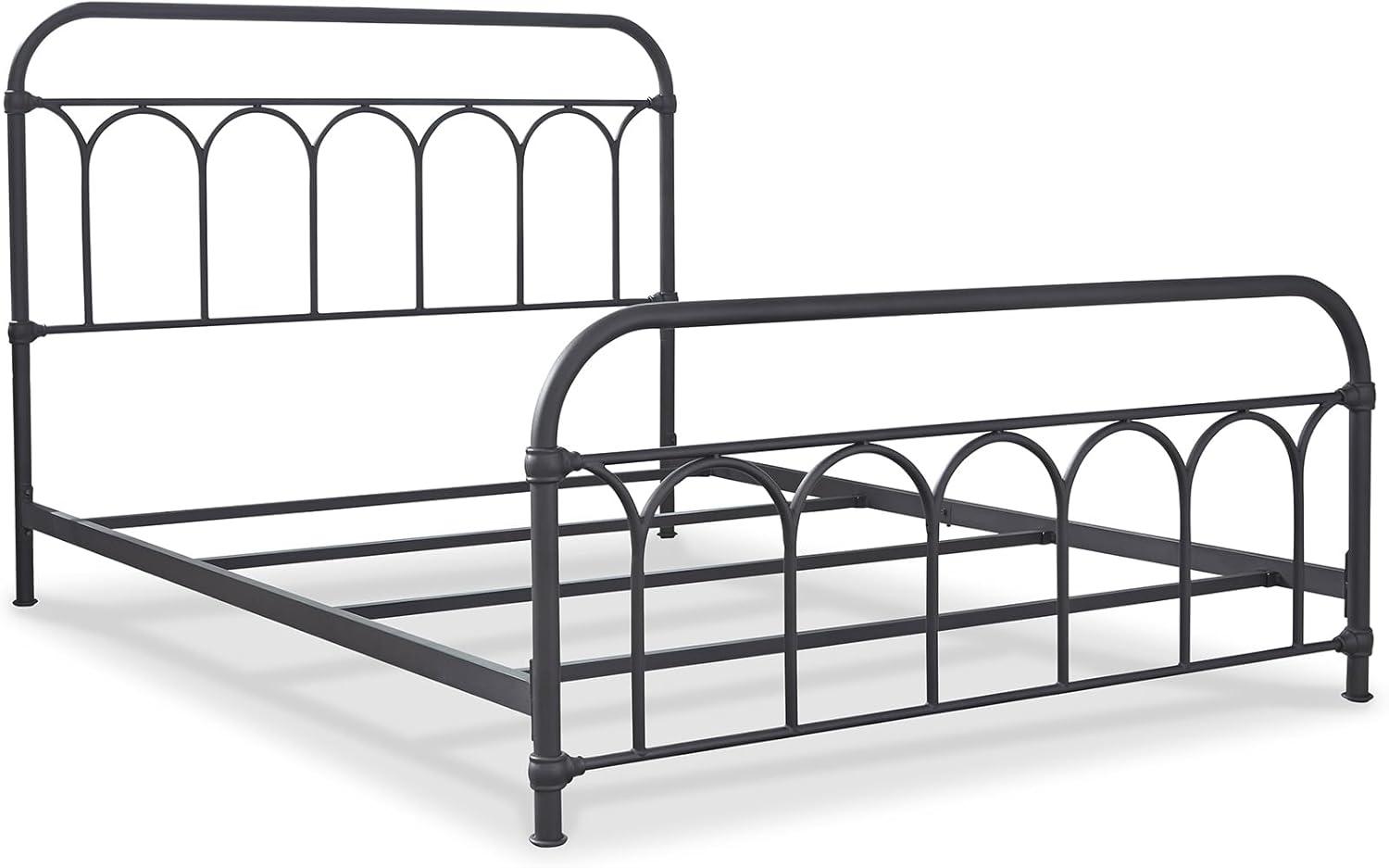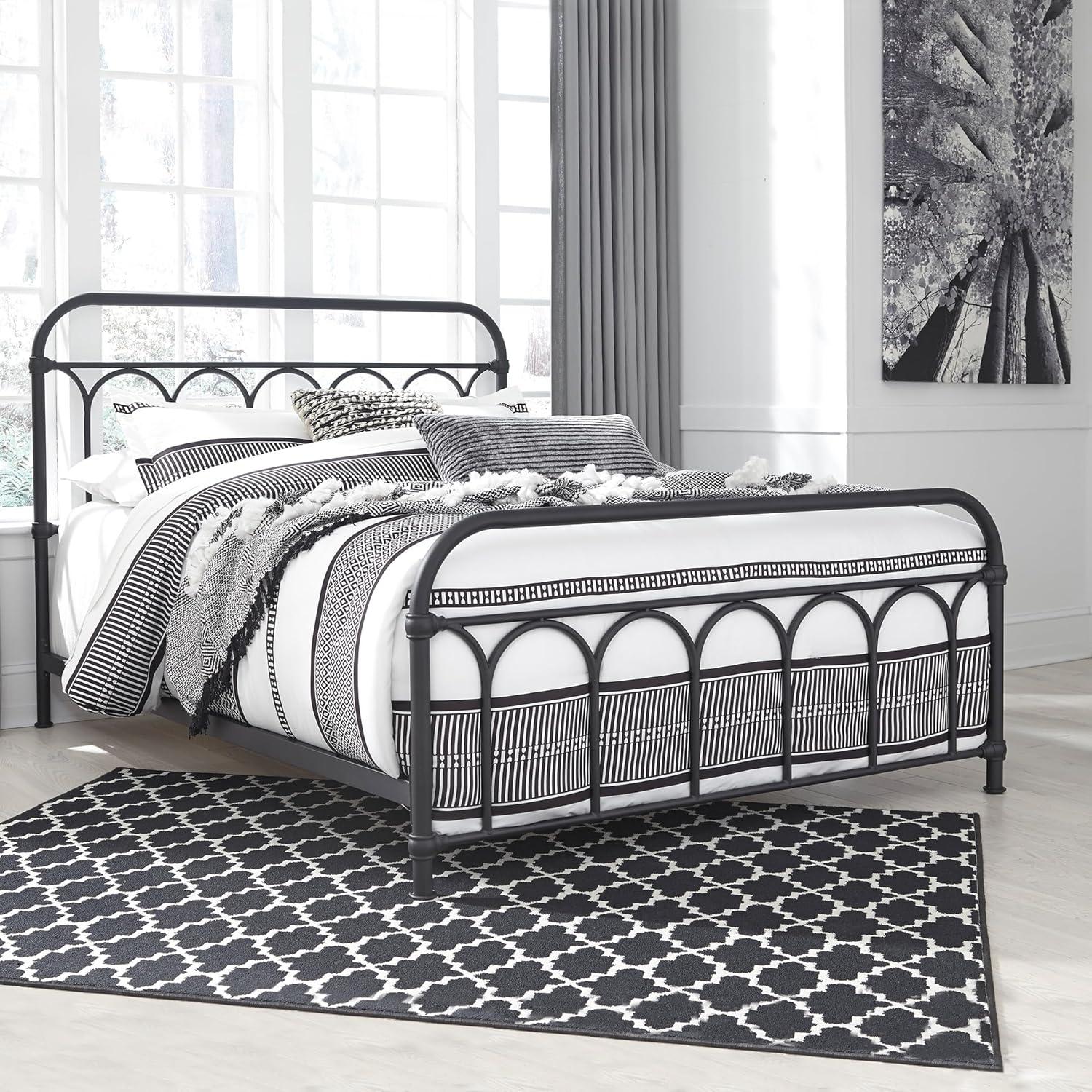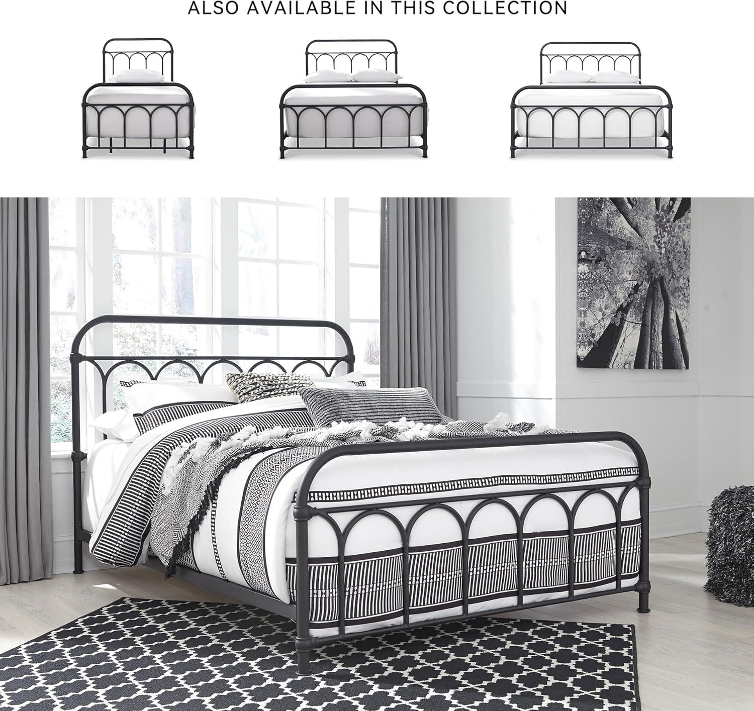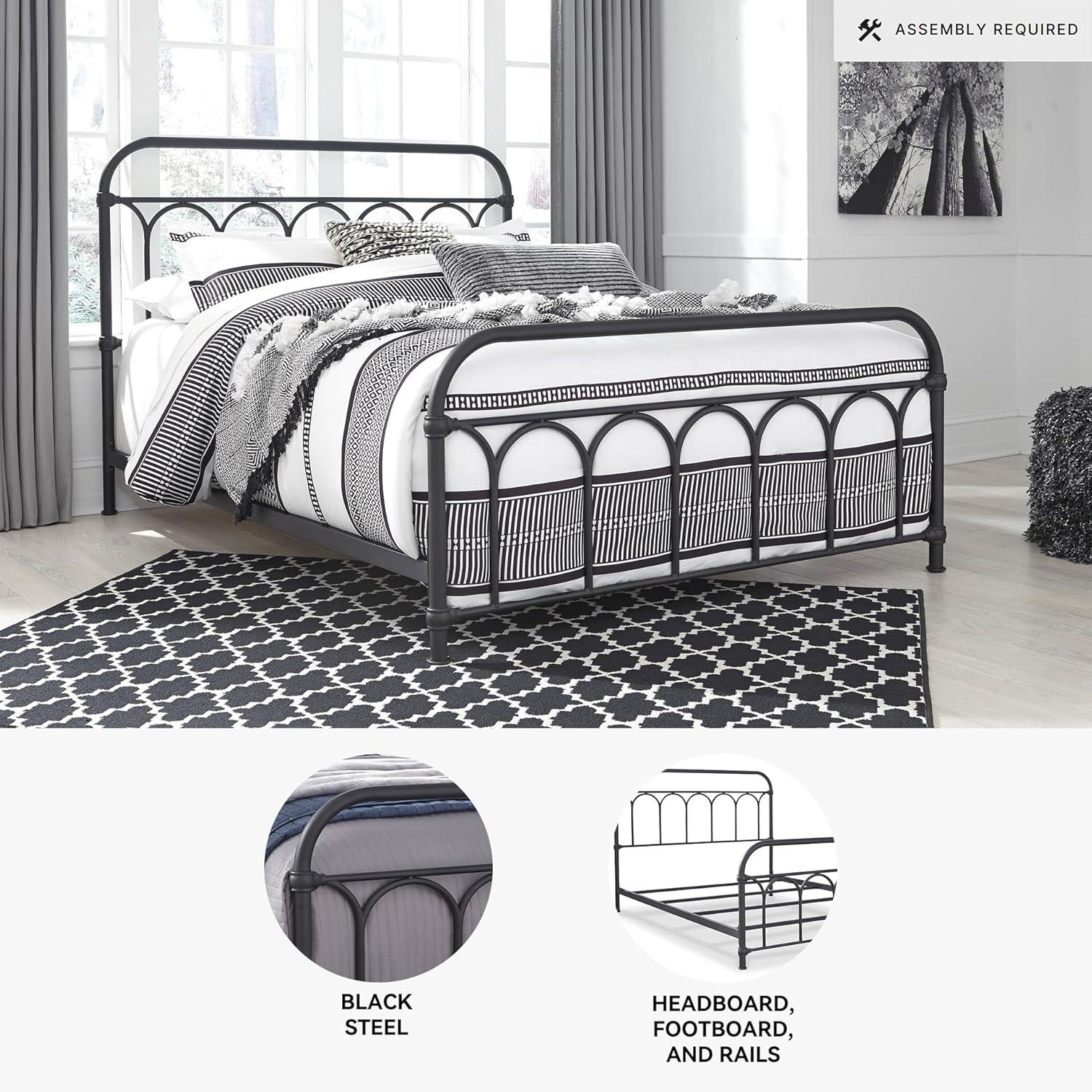 Signature Design by Ashley Nashburg Farmhouse Industrial Queen Metal Bed with Powdercoated Finish, Matte Black(Black)