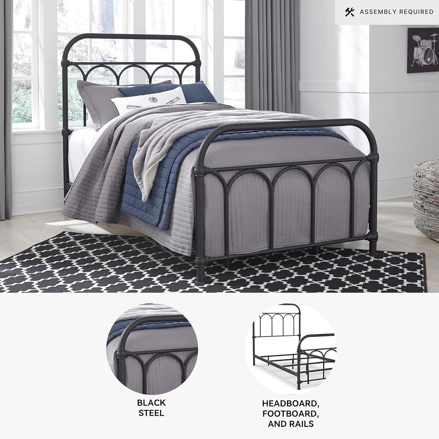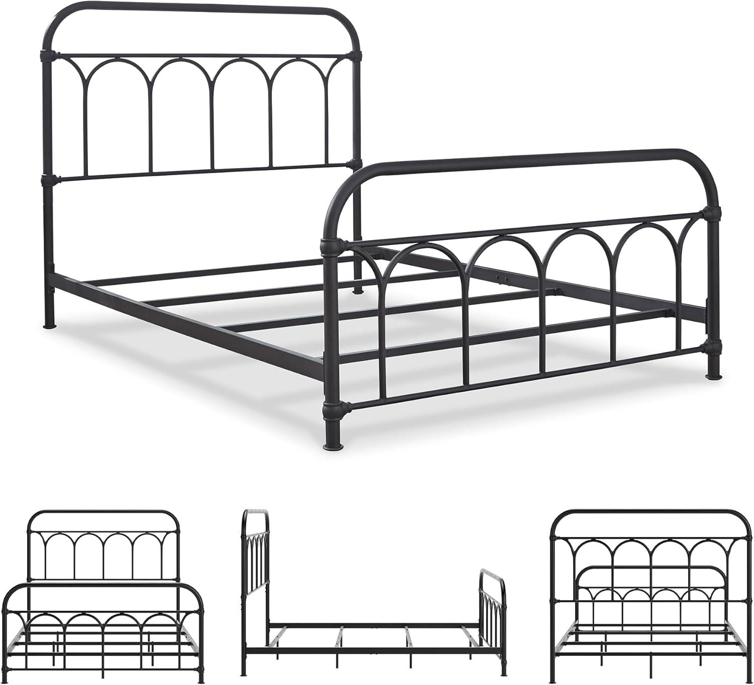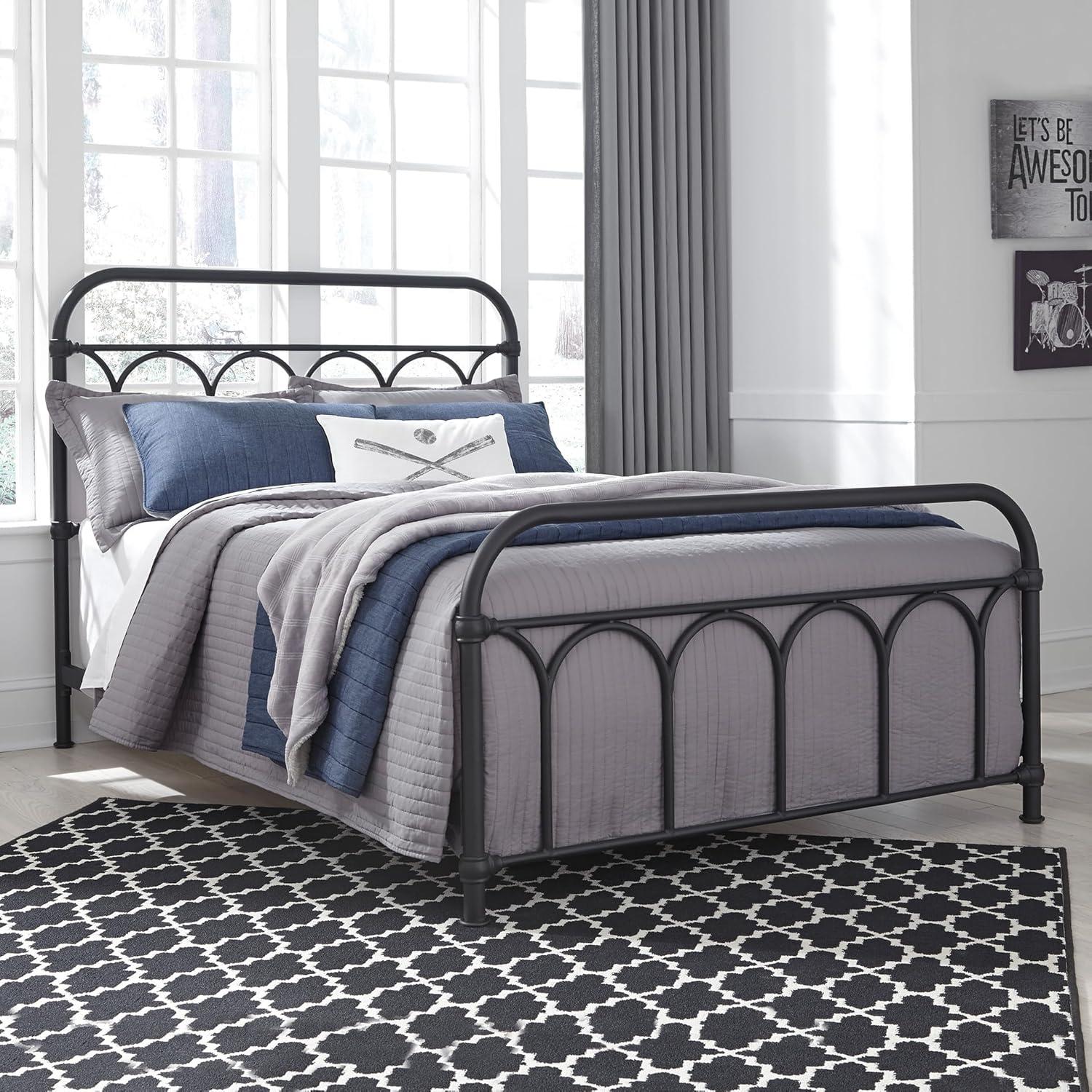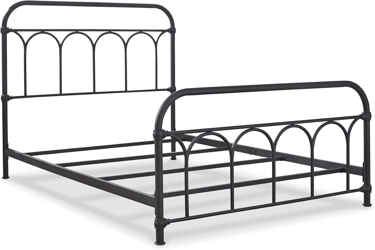 Signature Design by Ashley Nashburg Farmhouse Industrial Queen Metal Bed with Powdercoated Finish, Matte Black(Black)