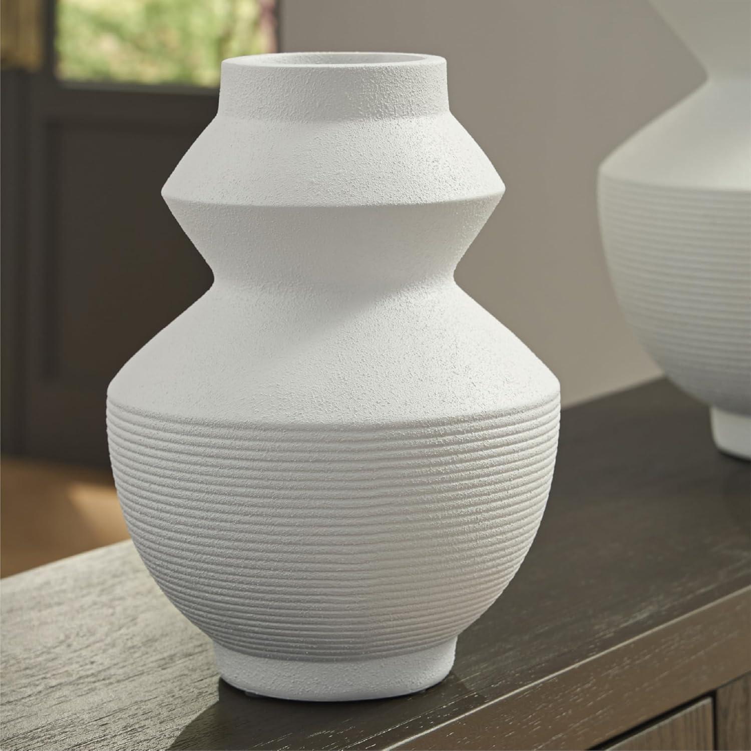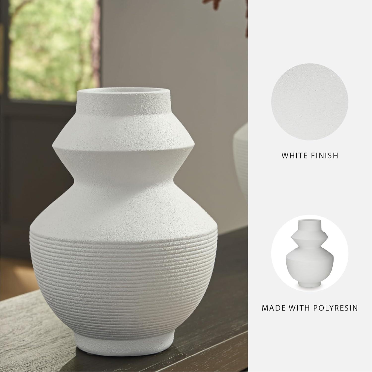 Signature Design by Ashley Naveen Casual Vase with Geometric Form Deisgn, White
