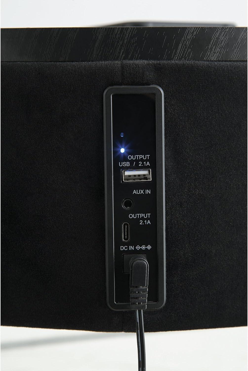 WELL MADE: Built with engineered wood, glass, metal & polyester. Includes wireless and aux audio inputs, wireless & USB-C charging, touch-button controls, 6.5″ full-range speaker & 2″ tweeter speaker