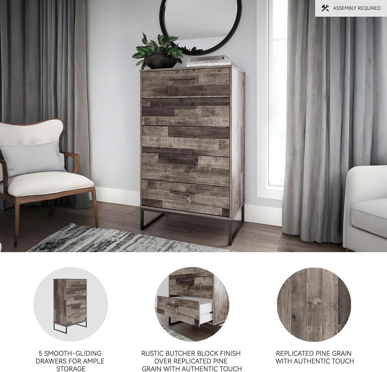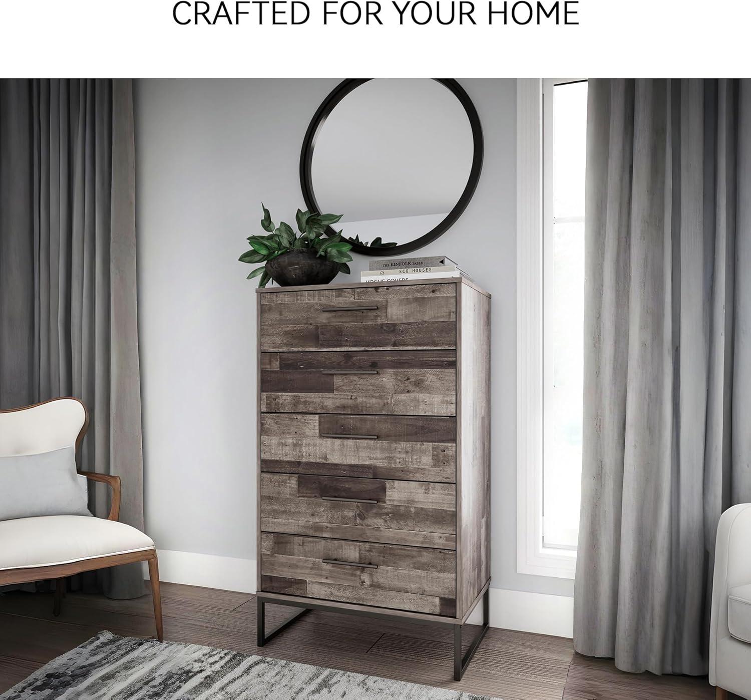 Signature Design by Ashley Neilsville Industrial 5 Drawer Chest of Drawers with Smooth-Gliding Drawers and Safety Stop, Gray(Grey)