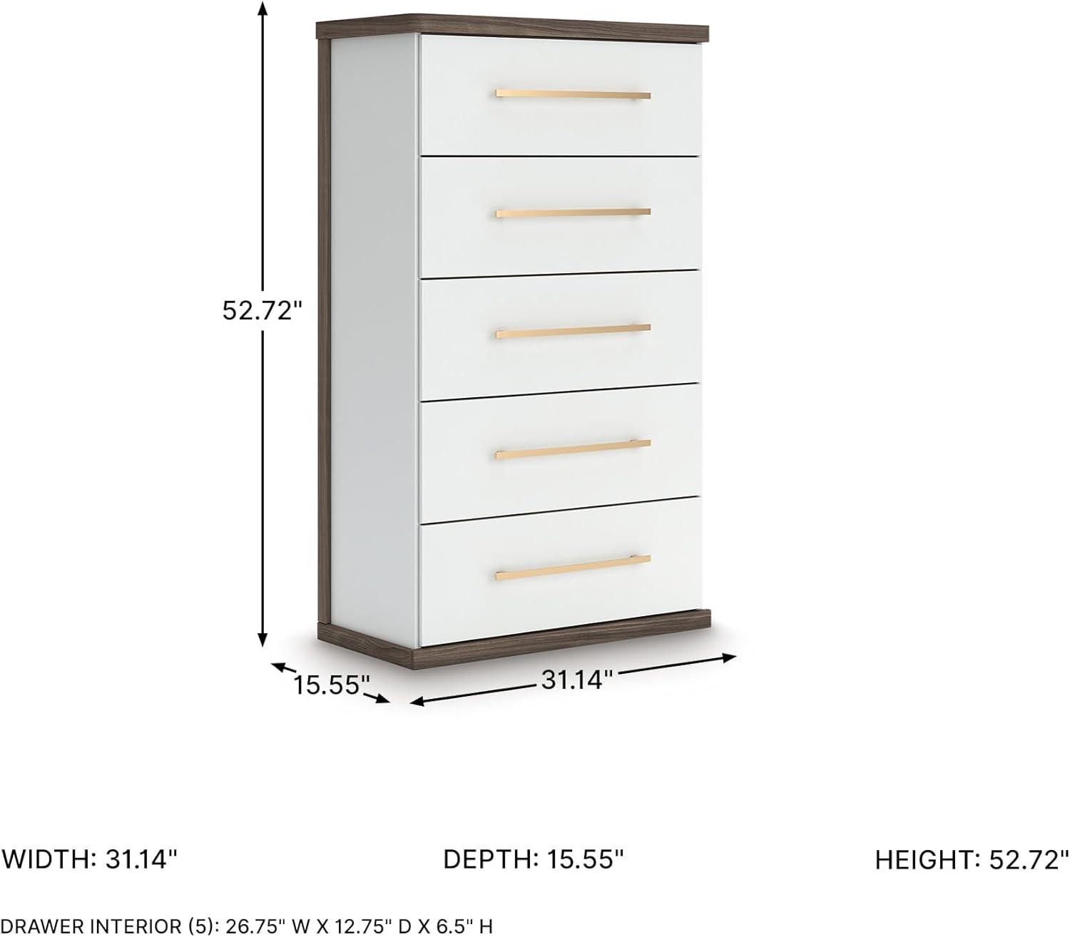 Signature Design by Ashley Nendalane Contemporary 5-Drawer Chest with Walnut Finish, Dark Brown & White