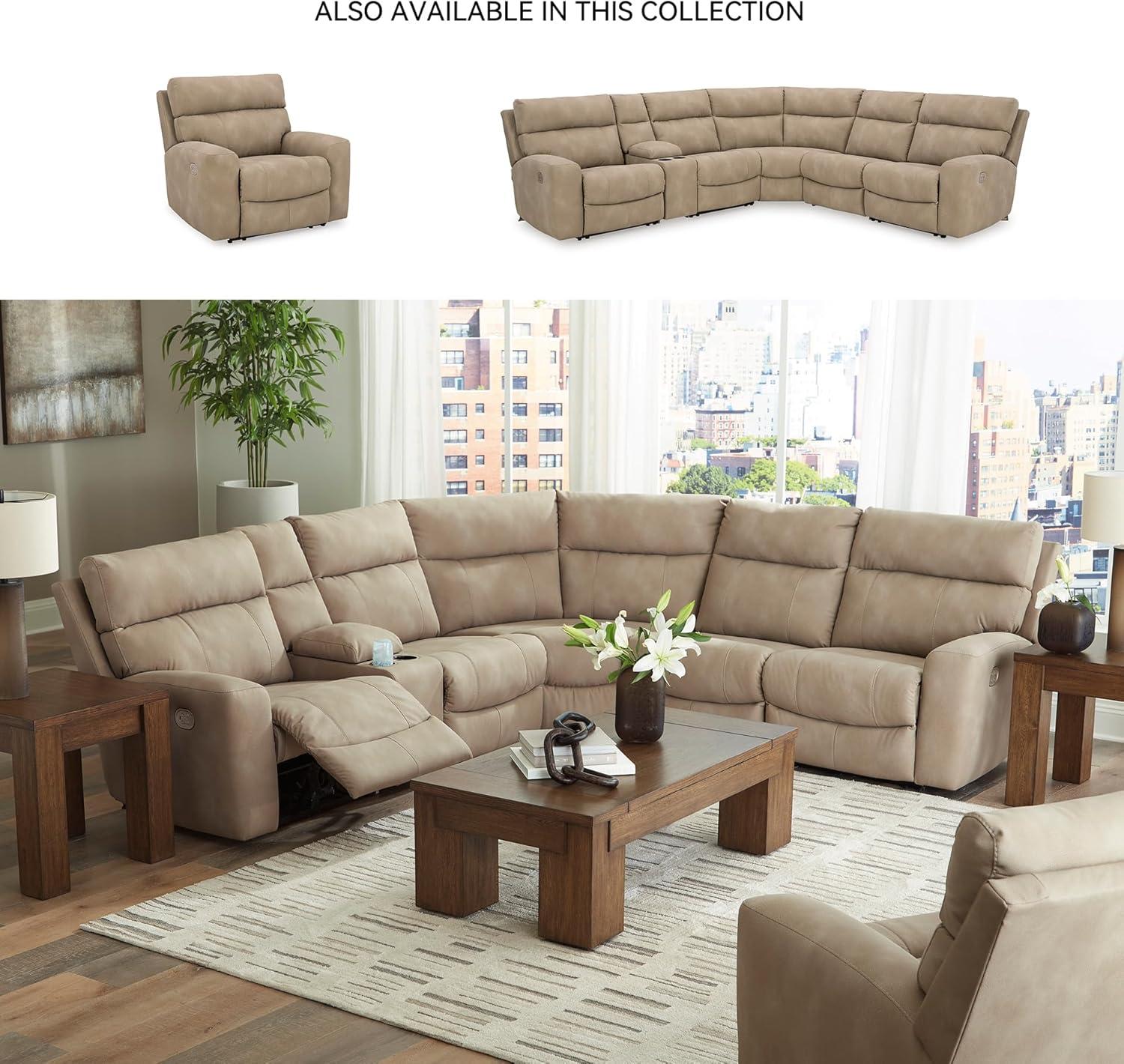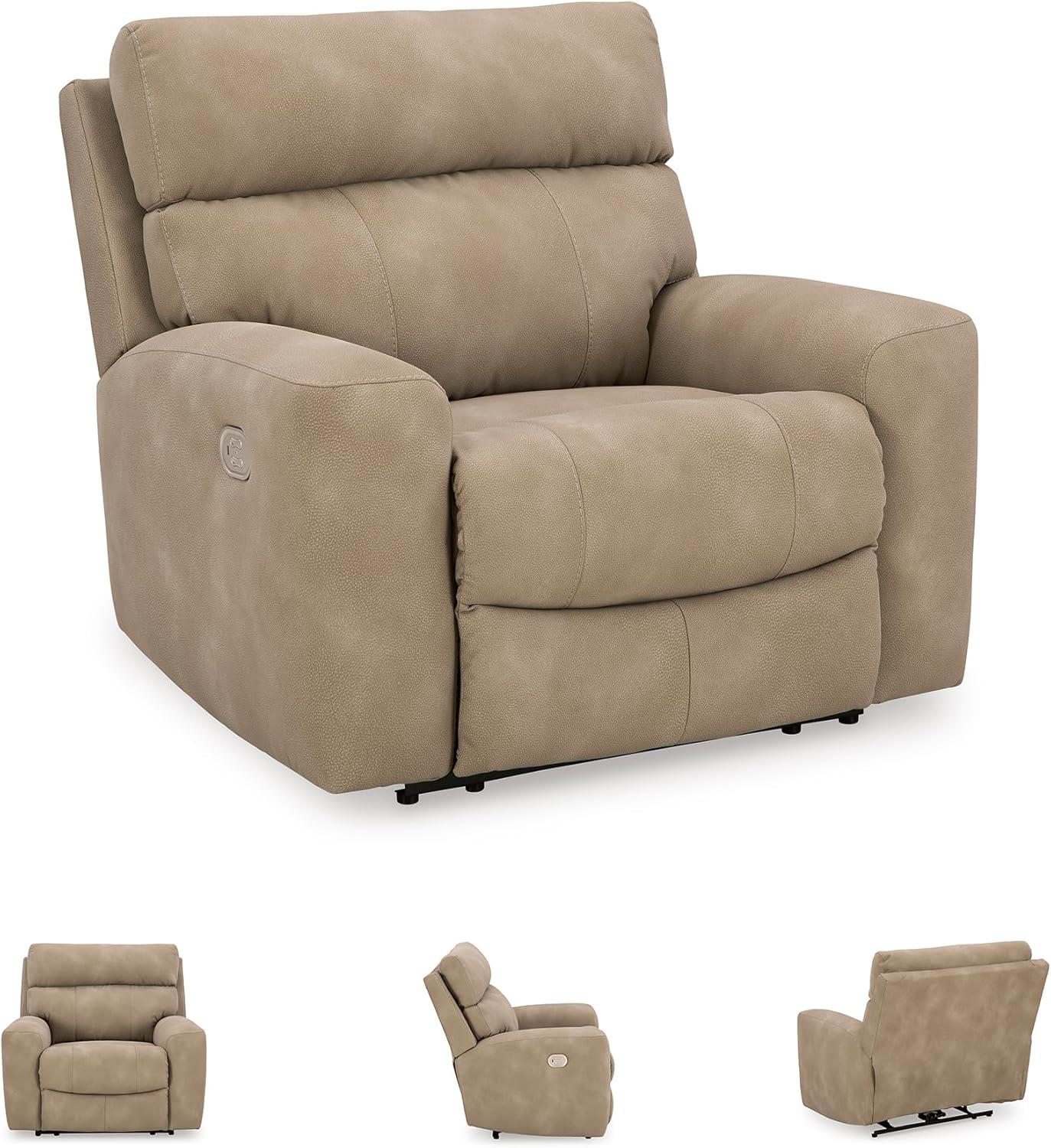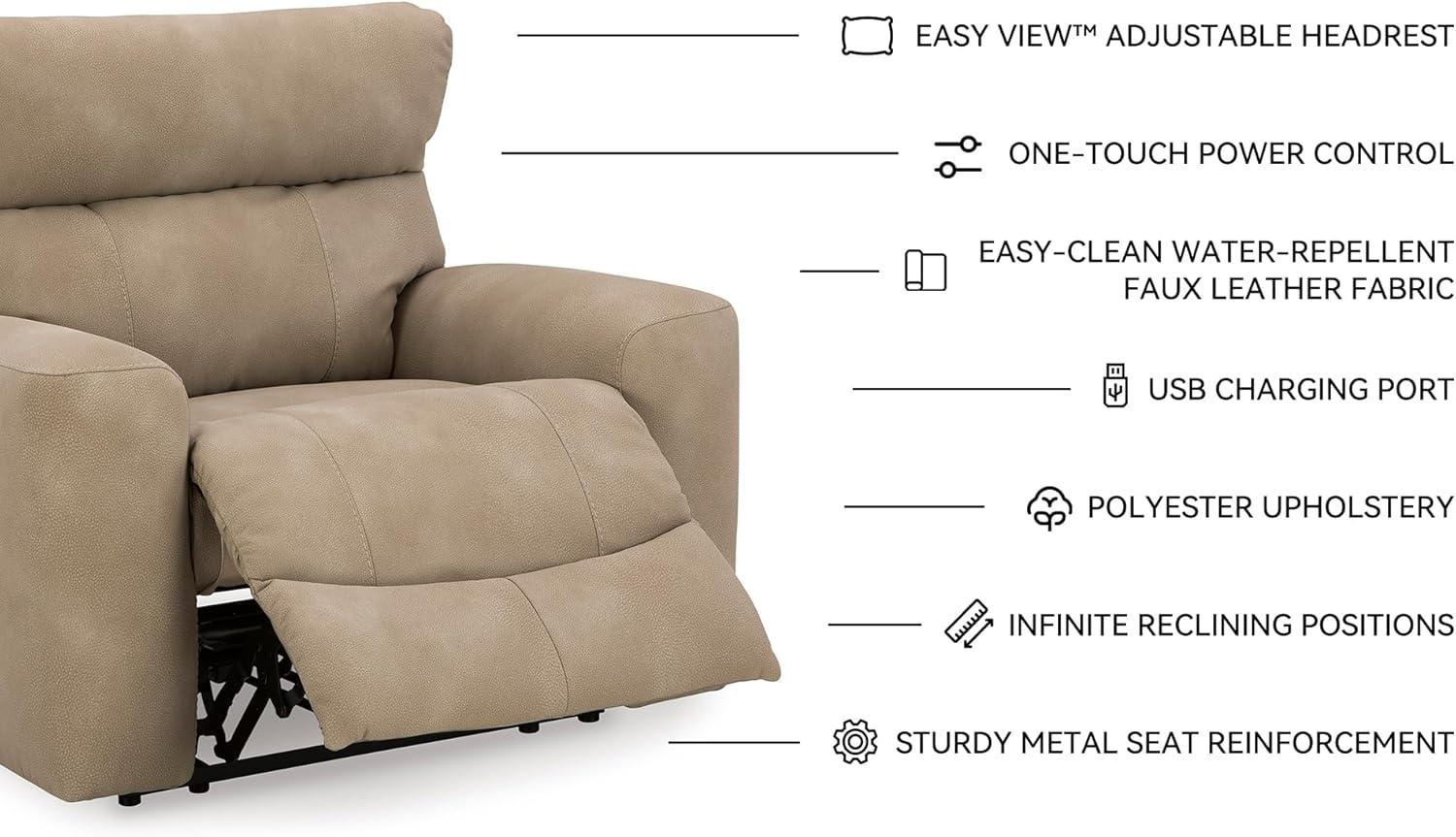 Signature Design by Ashley Next-Gen DuraPella Contemporary Faux Leather Wall Hugger Power Recliner with Adjustable Headrest and USB Ports, Light Brown(Light Brown)