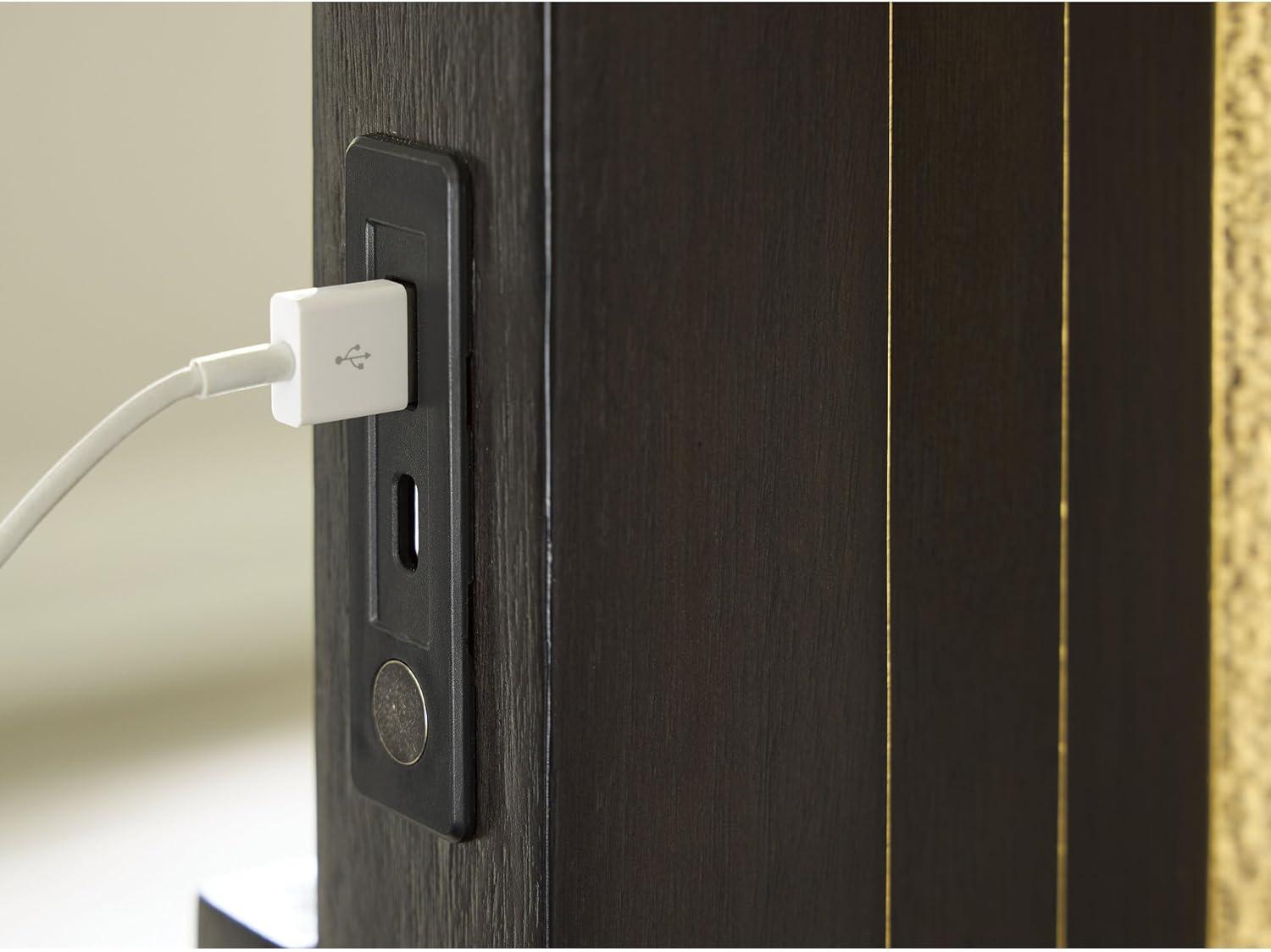 Signature Design by Ashley Neymorton Contemporary Stain Resistant Upholstered Lighted Panel Headboard with USB Ports for Bedroom, Queen, Light Gray & Dark Brown(Queen)