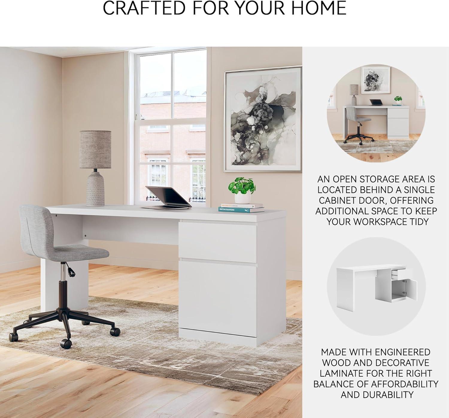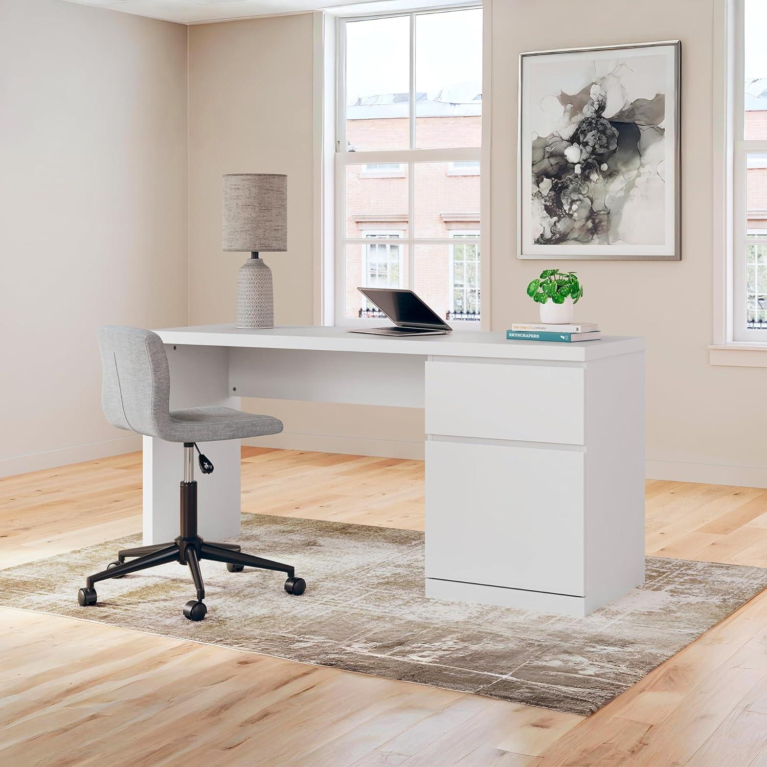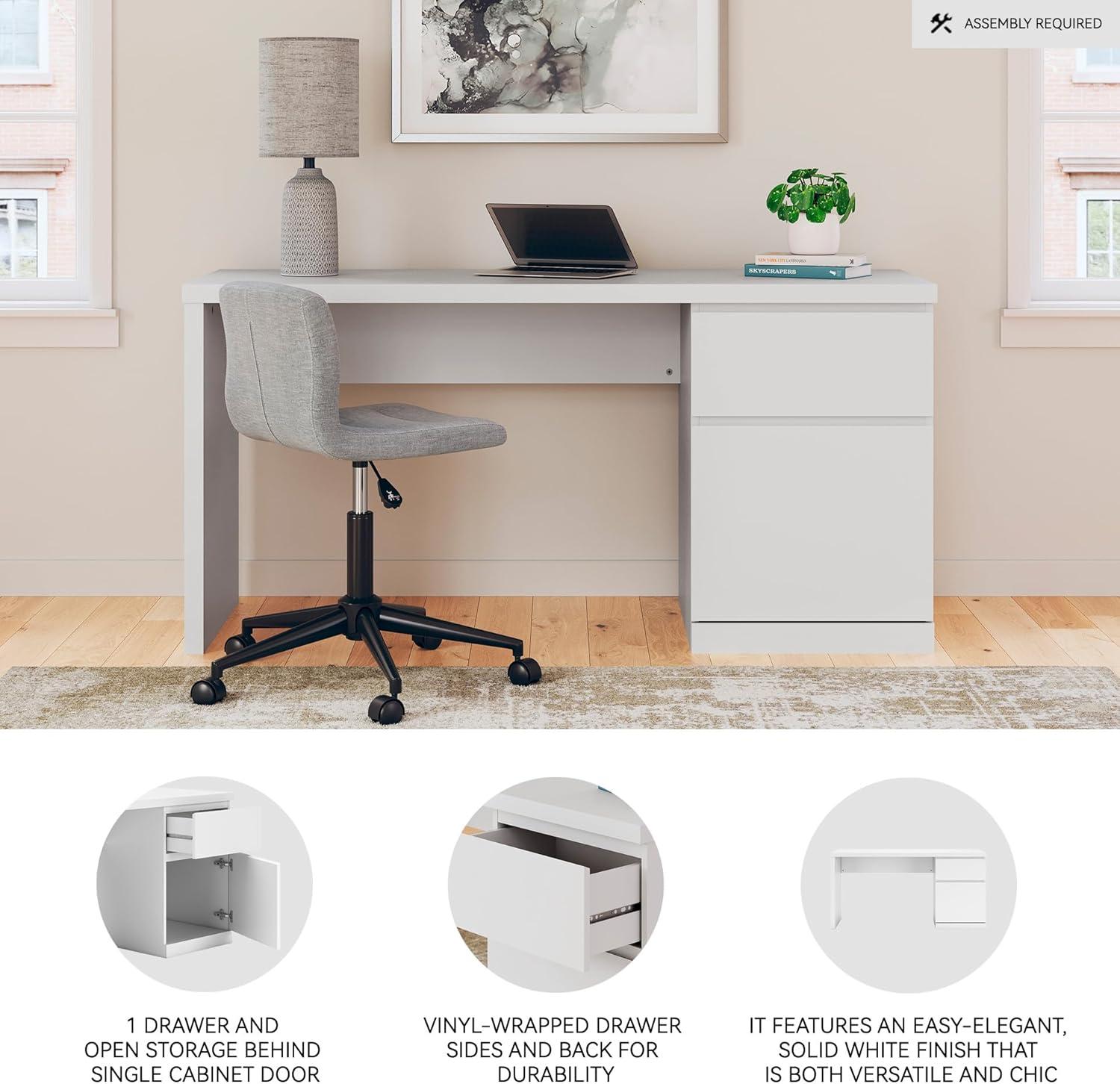 Signature Design by Ashley Onita Modern Home Office Desk with Drawer and Cabinet, White