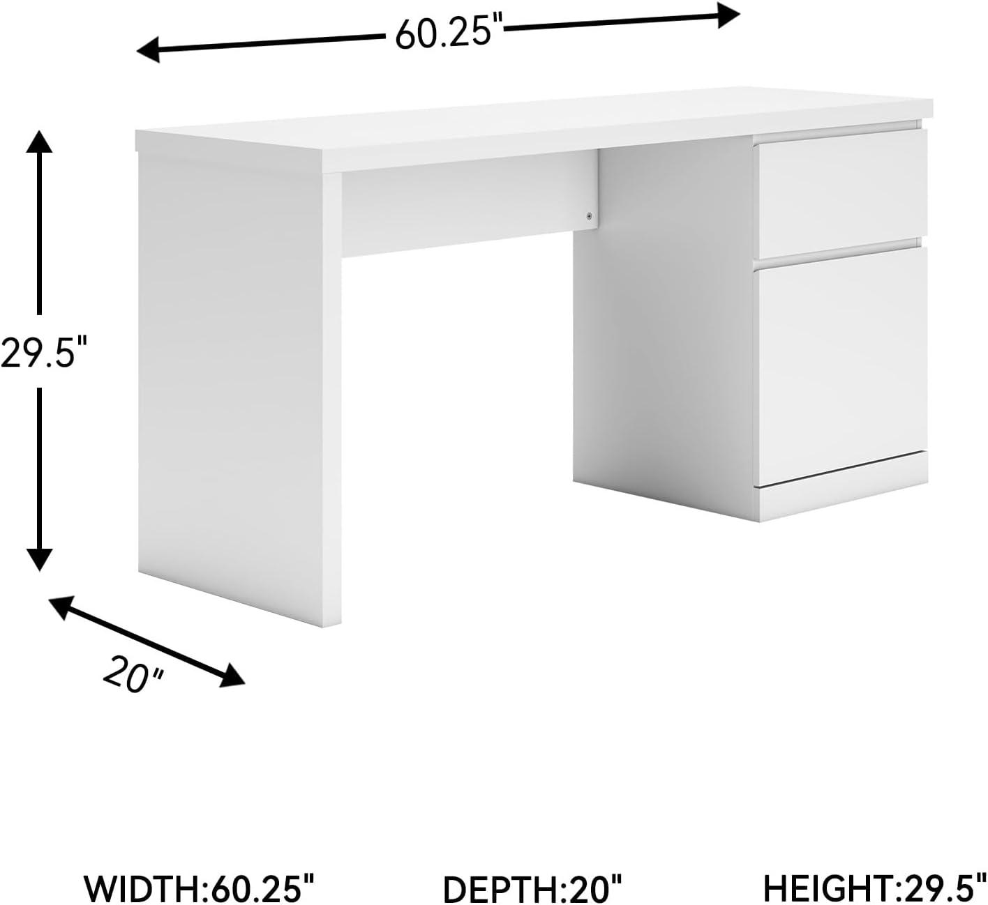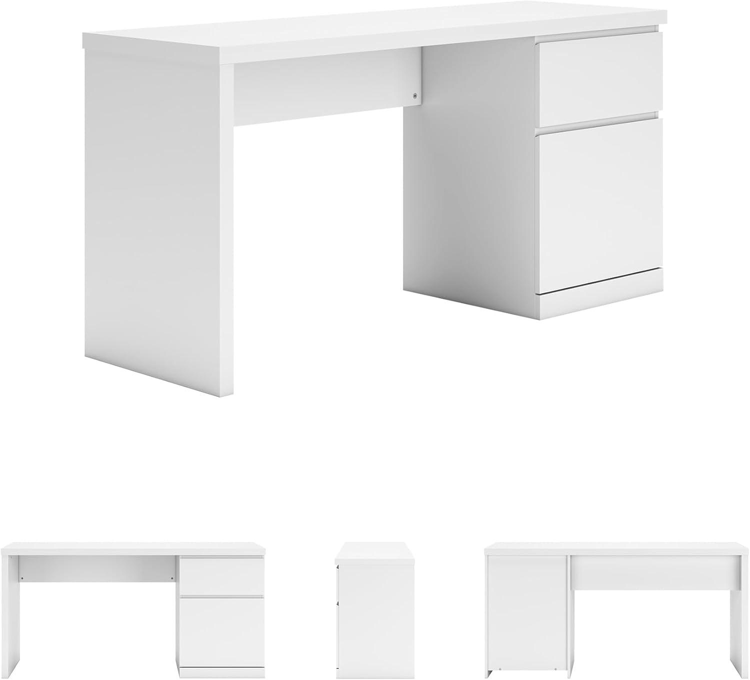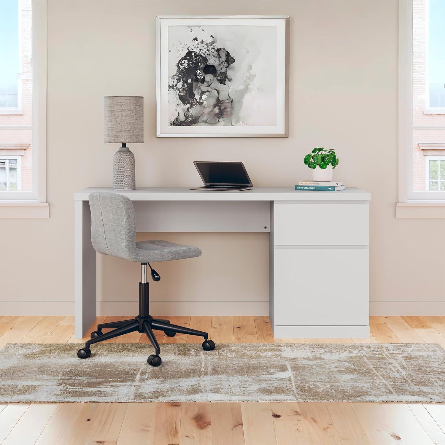 Create the modern workspace of your dreams. This sturdy home office desk offers a minimal design with maximum style, combining ultra-clean lines and an easy-elegant solid white finish with a hardware-less aesthetic. A spacious drawer with ball-bearing glides organizes the business at hand.