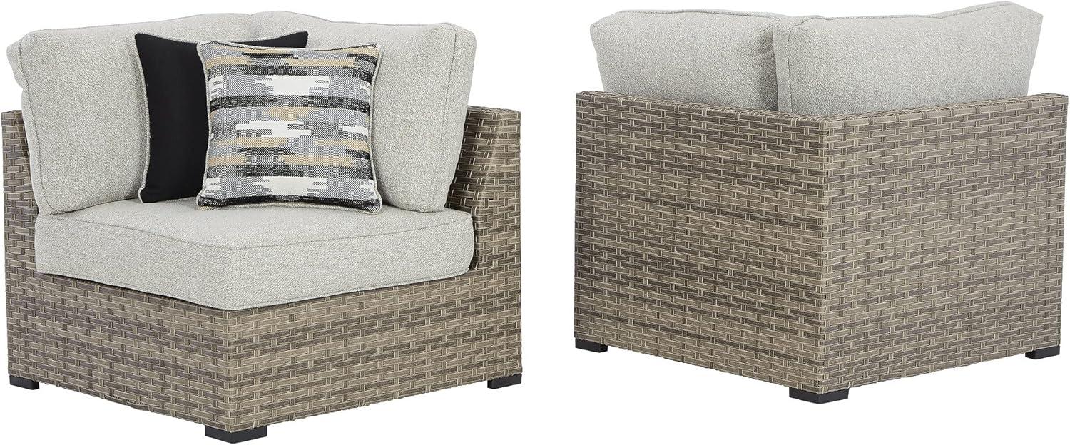 Signature Design by Ashley Outdoor Calworth Resin Wicker Patio Armless Chair, 2 Count, Nuvella Weather Resistant Fabric, Beige(Corner)
