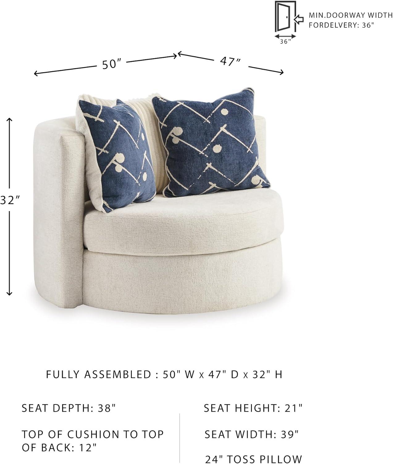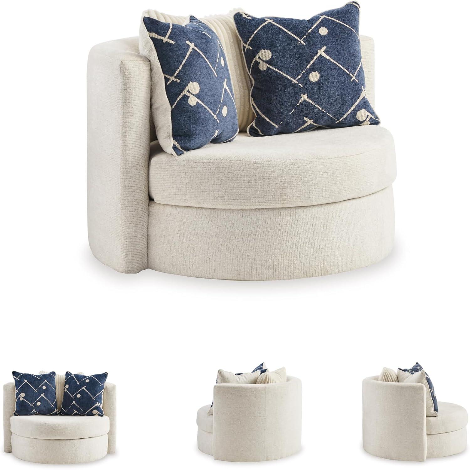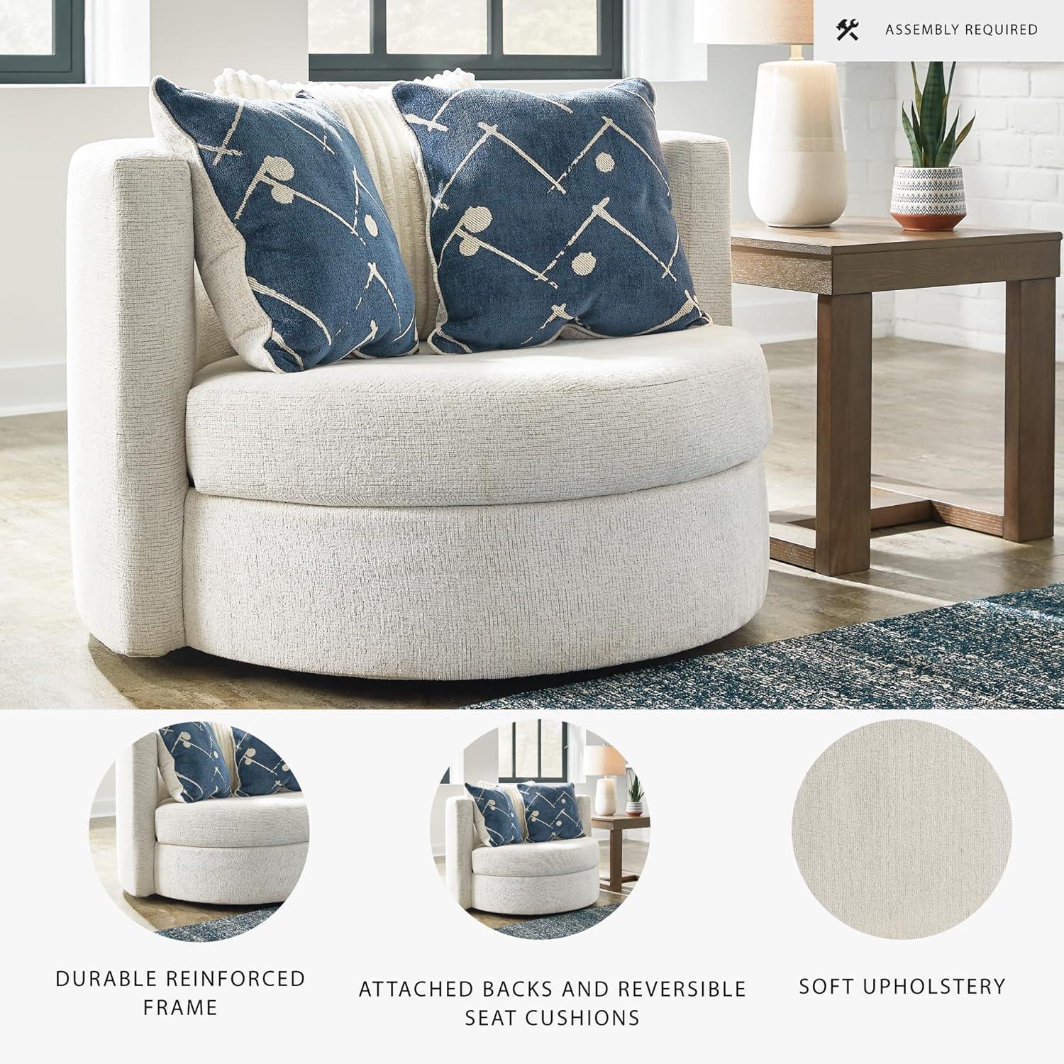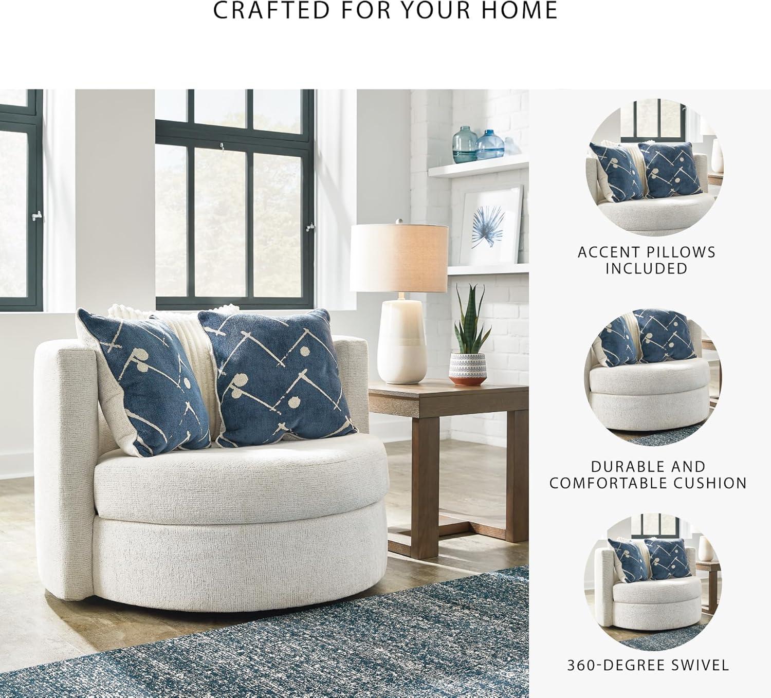 Signature Design by Ashley Padova Transitional Upholstered Swivel Accent Chair with 3 Throw Pillows, White