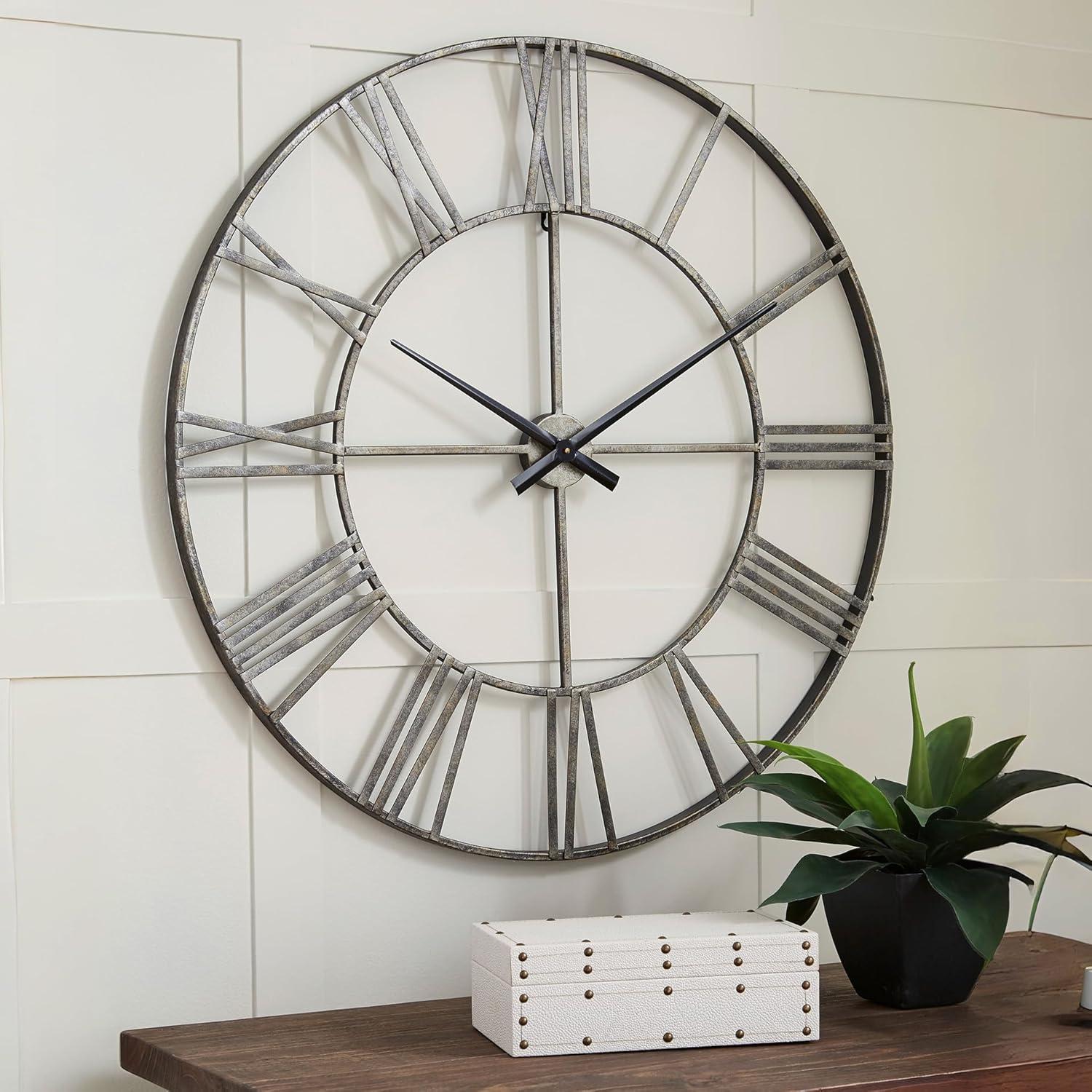 Casual style meets practical function with this wall clock. Roman numerals are easy to read on the sleek metal frame in an antiqued silver finish. Keeping track of time has never been so stylish. Hanging up a clock is the easiest way to make an empty wall go from drab to fab. Wall decor can transform the feel of a room by making ceilings look higher, lines cleaner and spaces feel even bigger. With our accents, your walls can have interesting visuals and images that reflect many aspects of your life and personality. And we go the extra mile to package, protect and deliver your purchase in a timely manner.