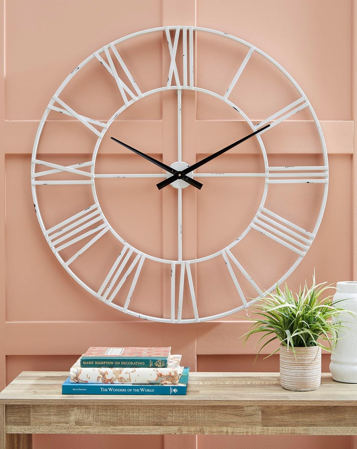 Signature Design by Ashley Paquita Vintage Roman Numeral Round Wall Clock, 36 x 36 Inches, Antique Gray(White)