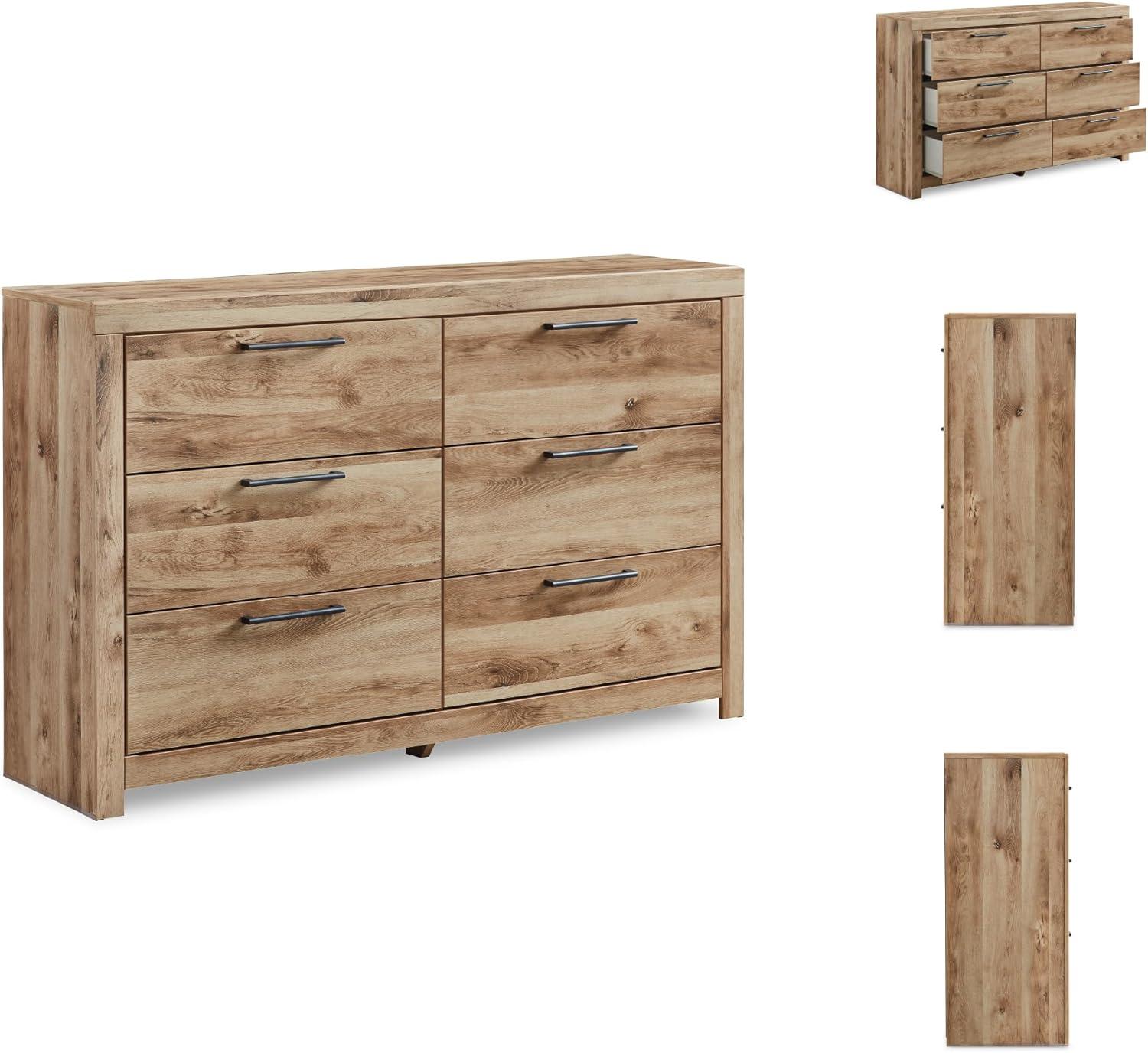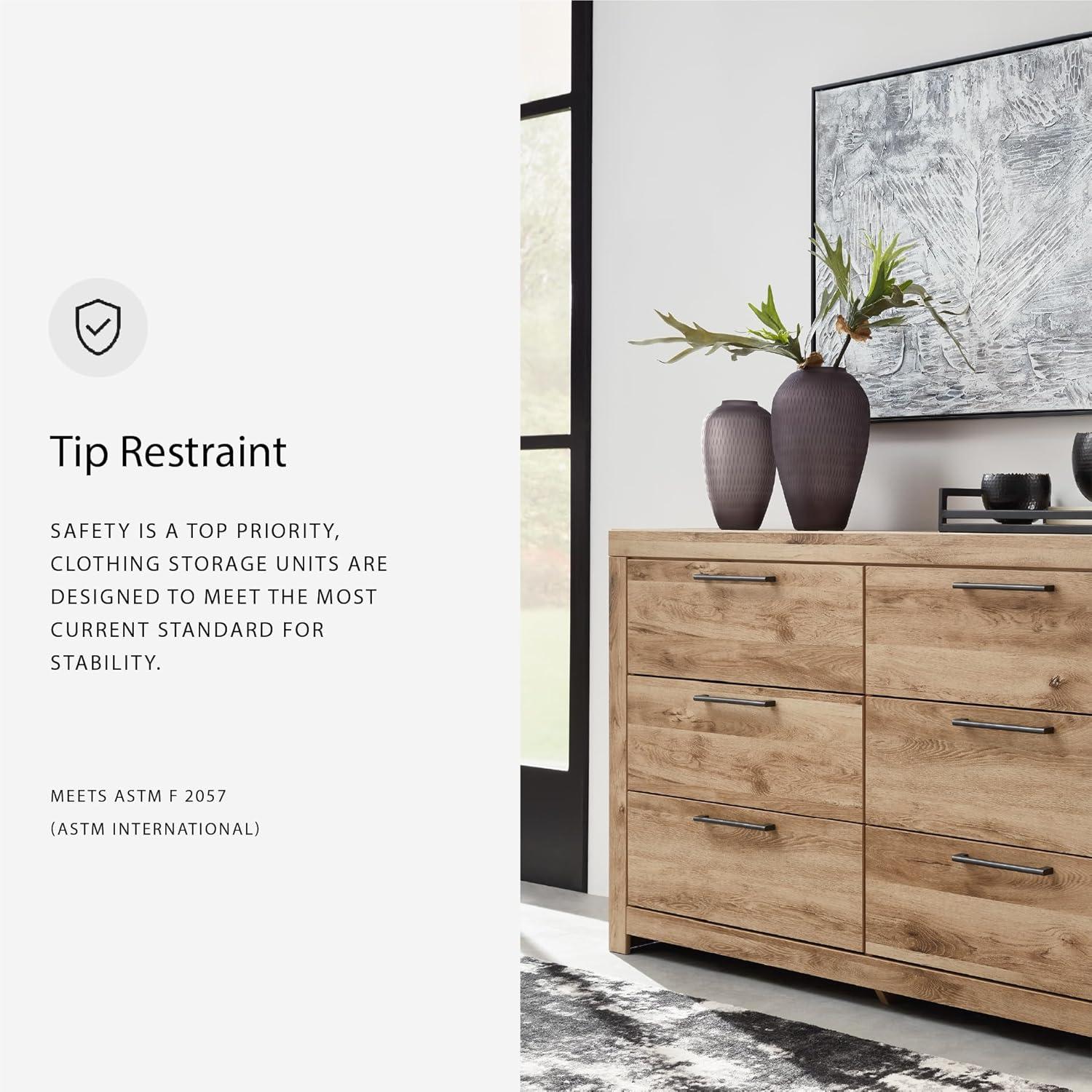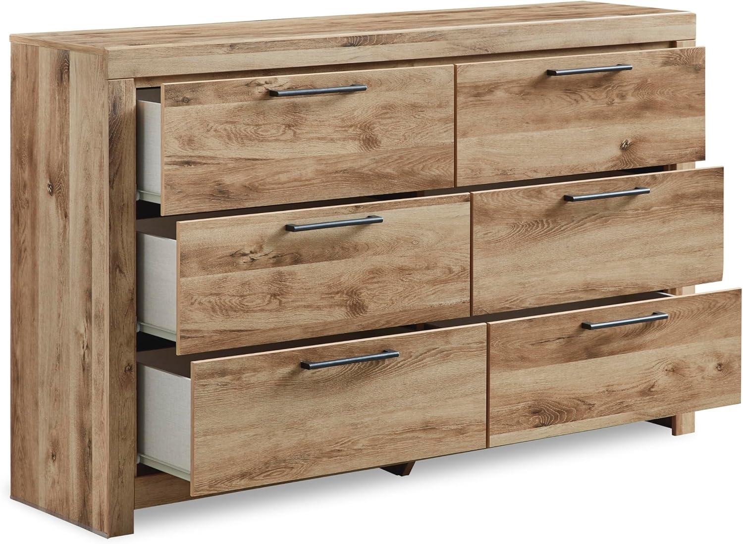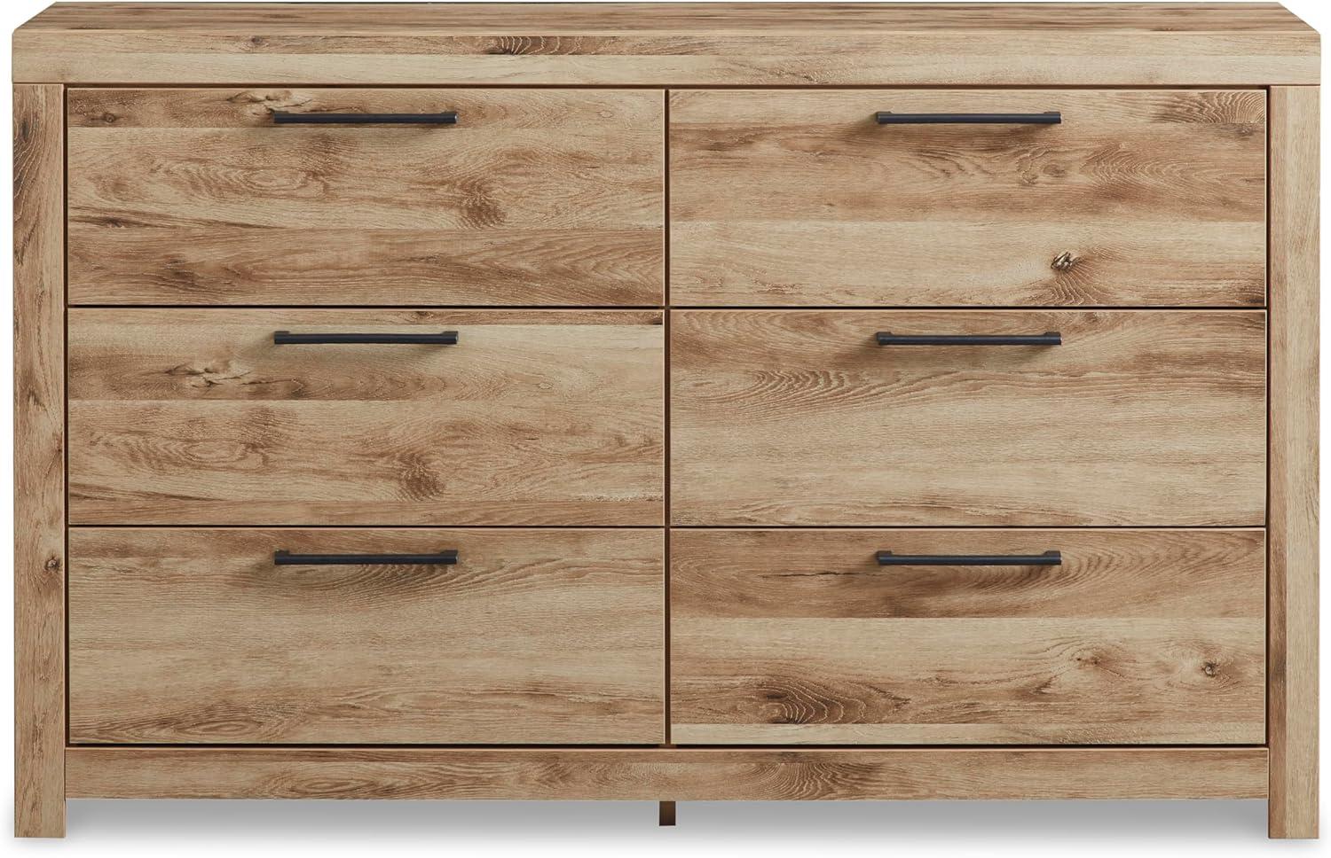 Signature Design by Ashley Parlayon Modern 6-Drawer Dresser and Mirror with Anti-Tipping Restraint, Black(Light Brown)