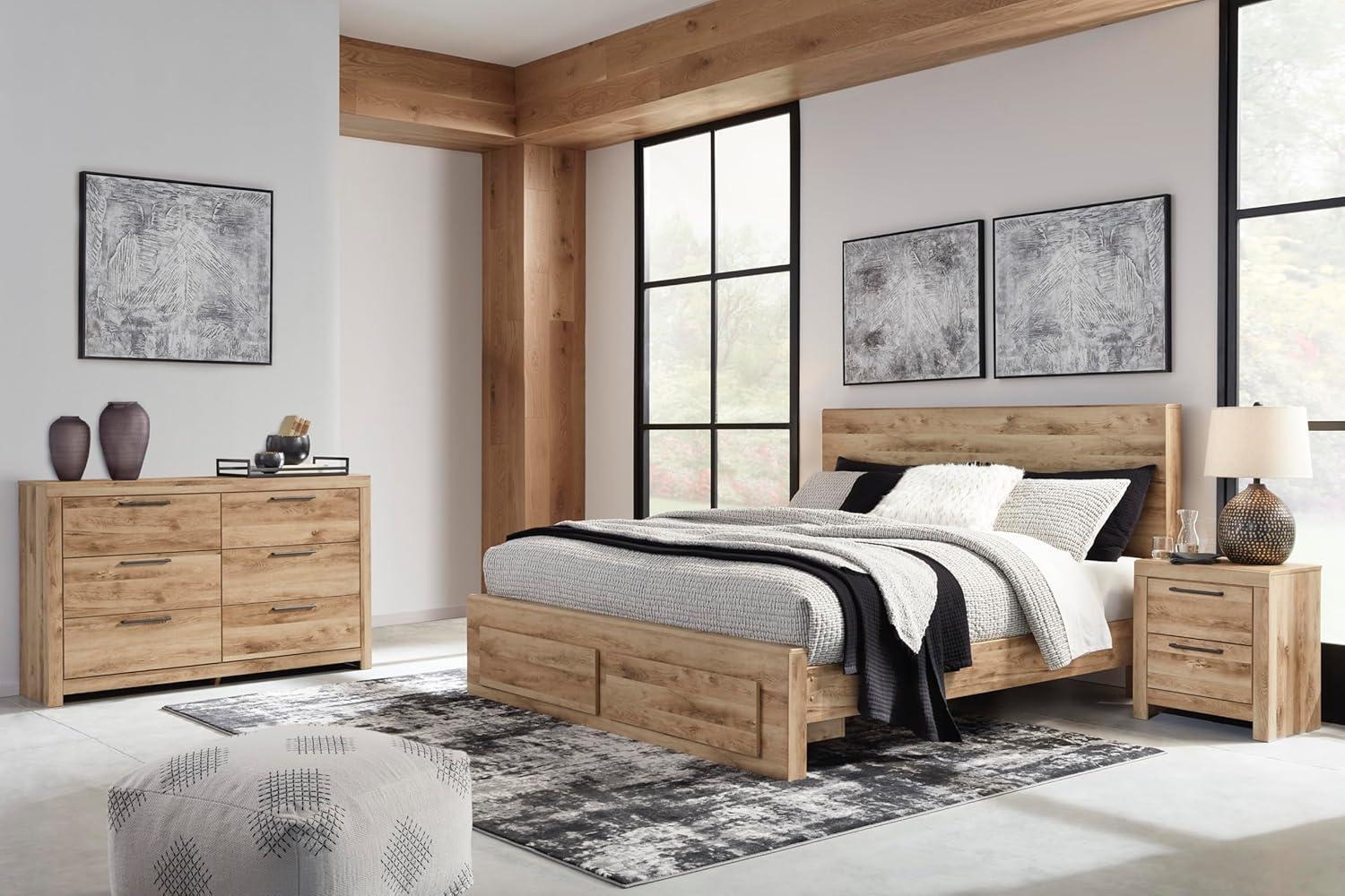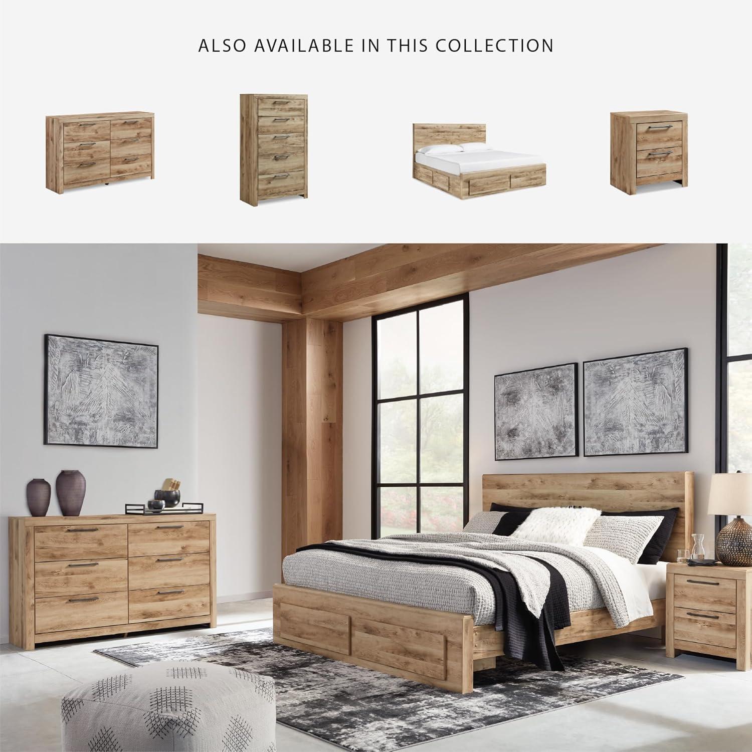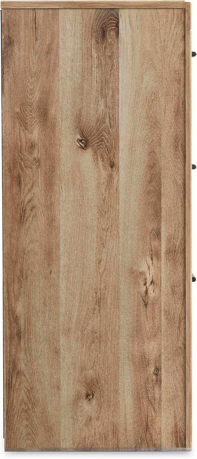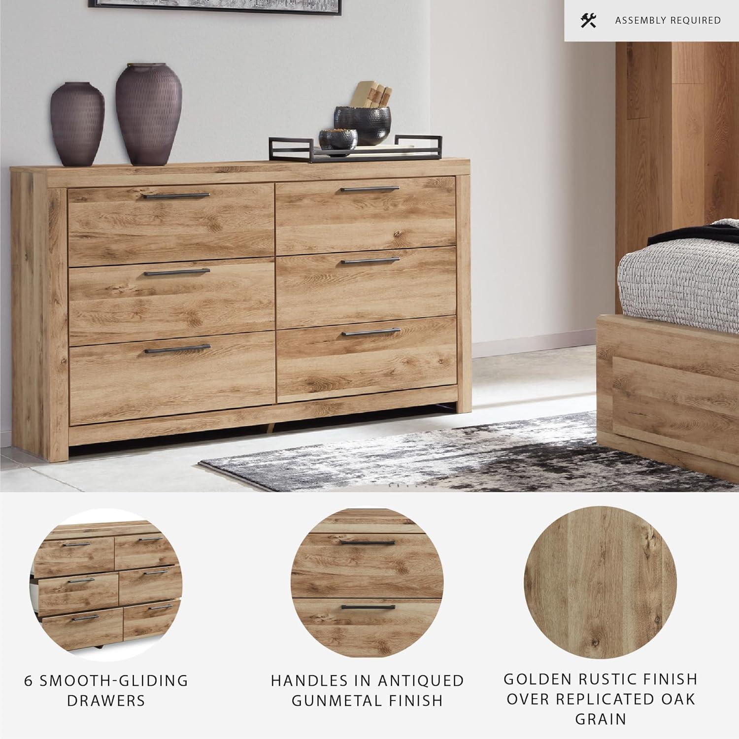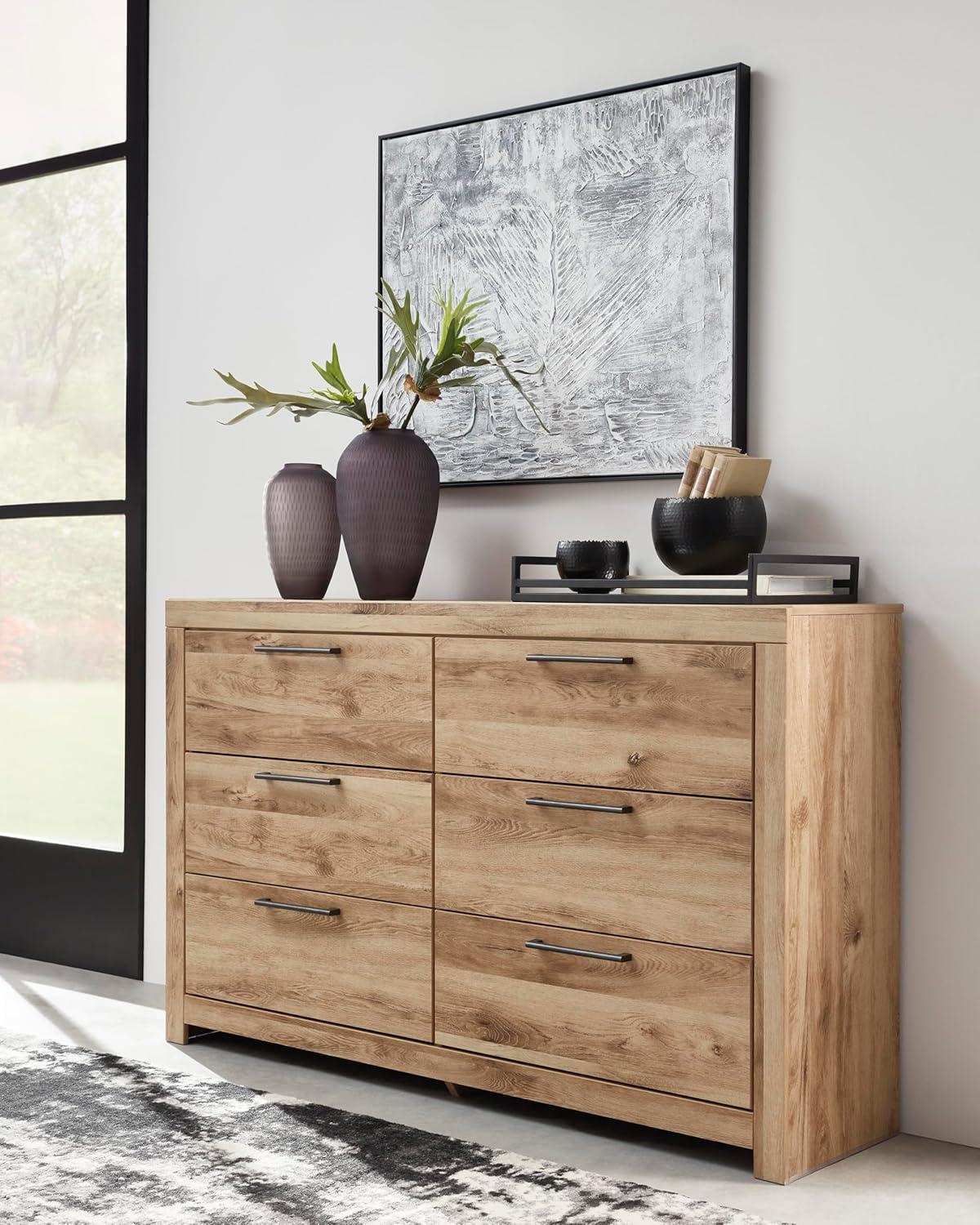 Signature Design by Ashley Parlayon Modern 6-Drawer Dresser and Mirror with Anti-Tipping Restraint, Black(Light Brown)
