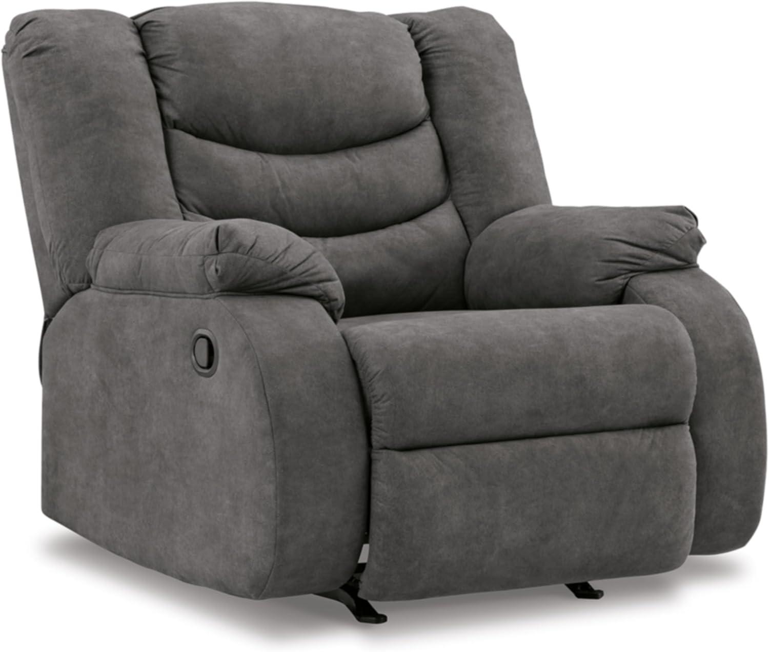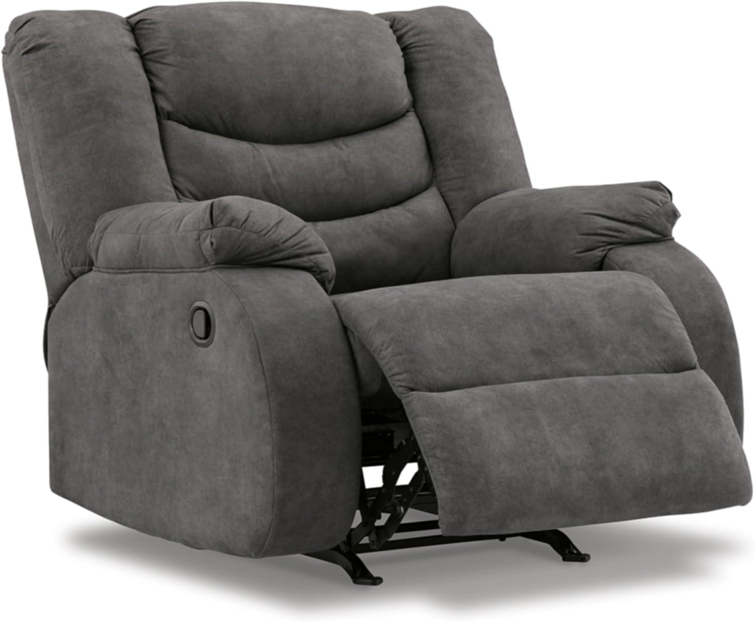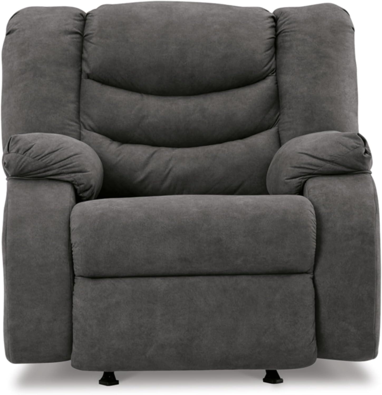Signature Design by Ashley Partymate Contemporary Faux Leather Manual Rocker Recliner, Dark Brown(Grey)