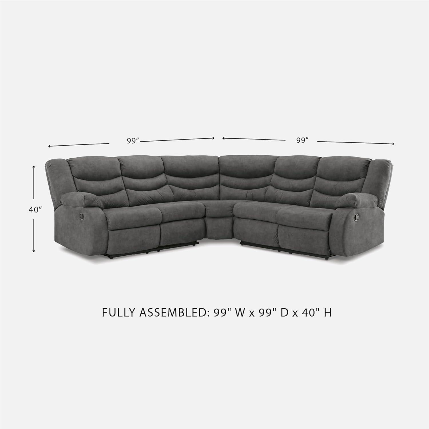 COMFY SEATING: Measures 39″ W x 40″ D x 40″ H. Arm height: 26″. Distance between arms: 17″. Seat depth: 22″. Fully reclined length: 32″. Distance between recliner and wall should be at least 12″