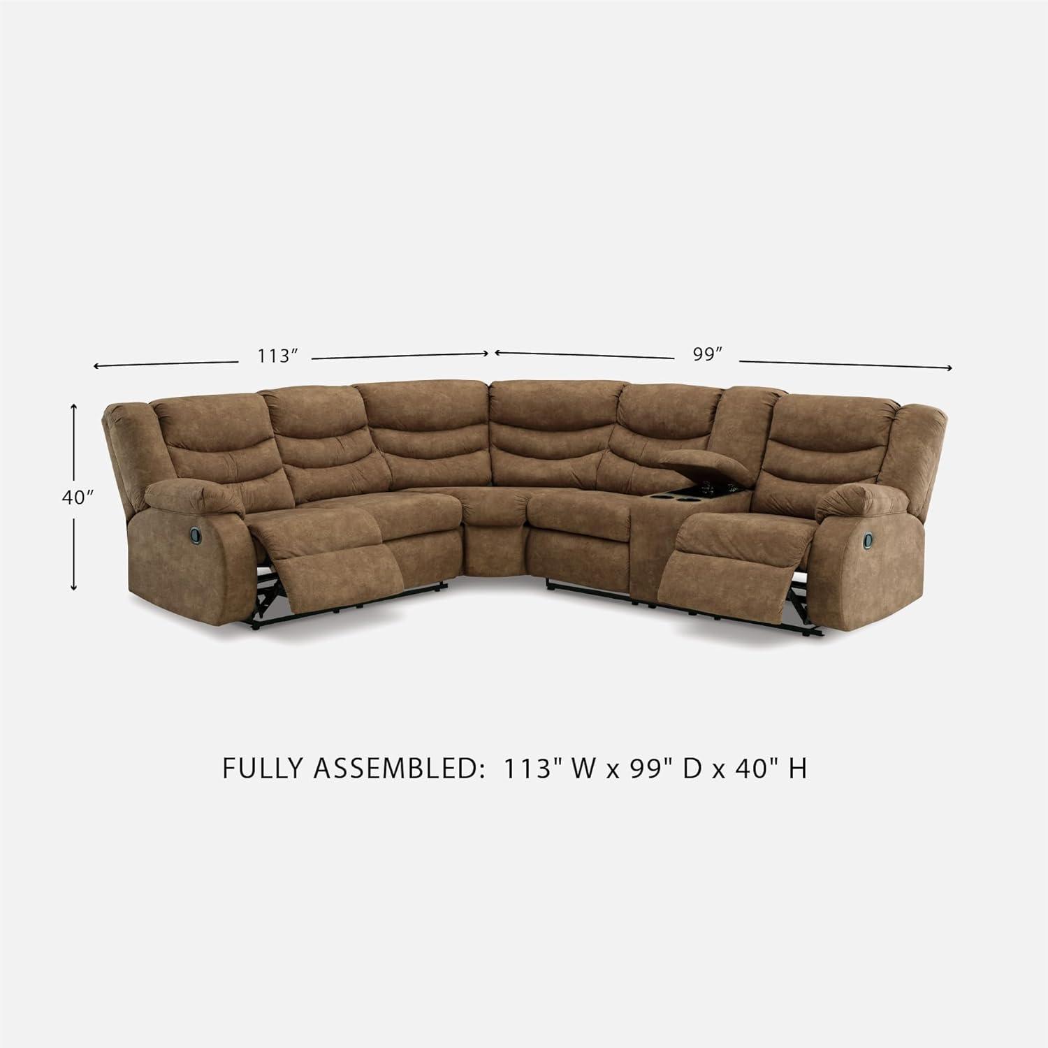 COMFY SEATING: Measures 39″ W x 40″ D x 40″ H. Arm height: 26″. Distance between arms: 17″. Seat depth: 22″. Fully reclined length: 32″. Distance between recliner and wall should be at least 12″