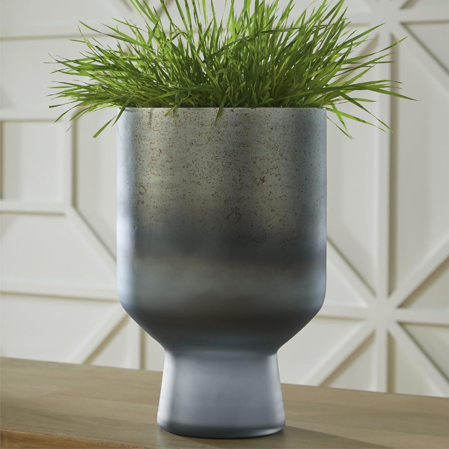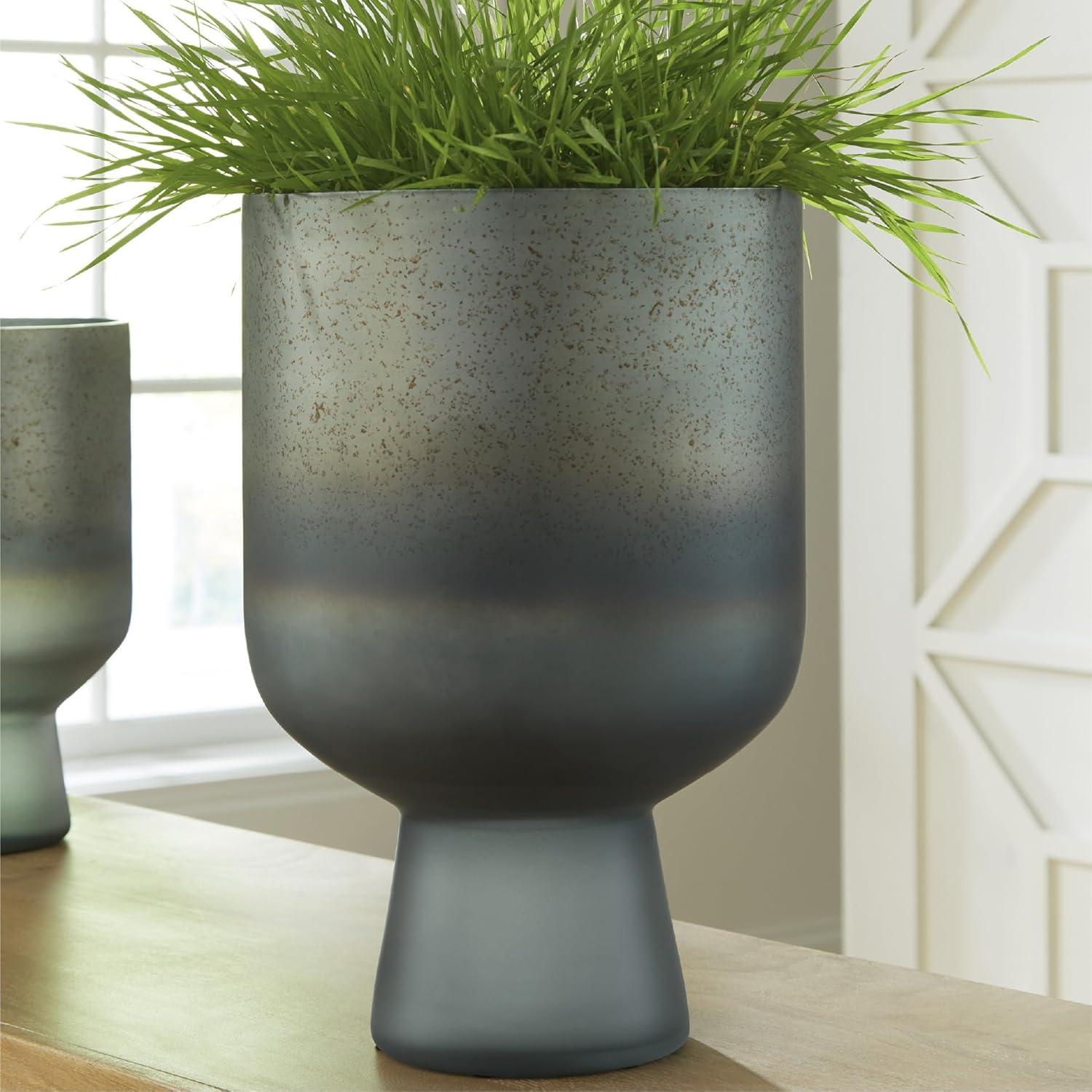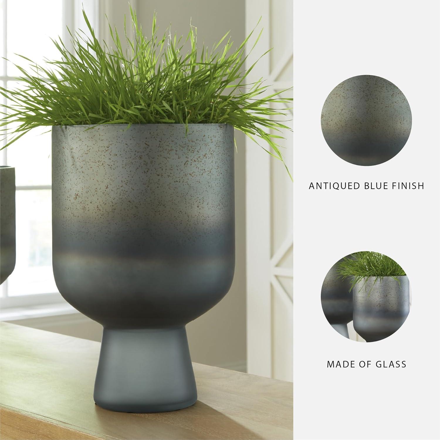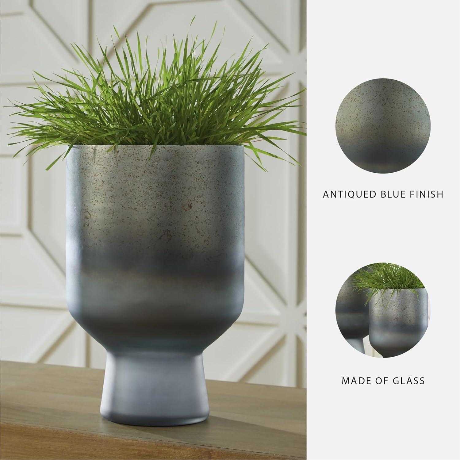 Signature Design by Ashley Pennmore Contemporary Vase with Antiqued Finish, Blue(Blue)