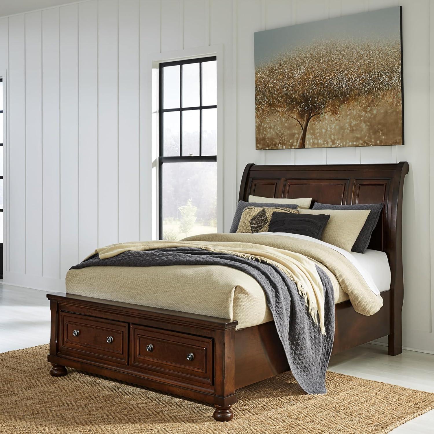 Signature Design by Ashley Porter Traditional California King Panel Bed, Foundation or Box Spring Needed, Dark Brown(Dark Brown)