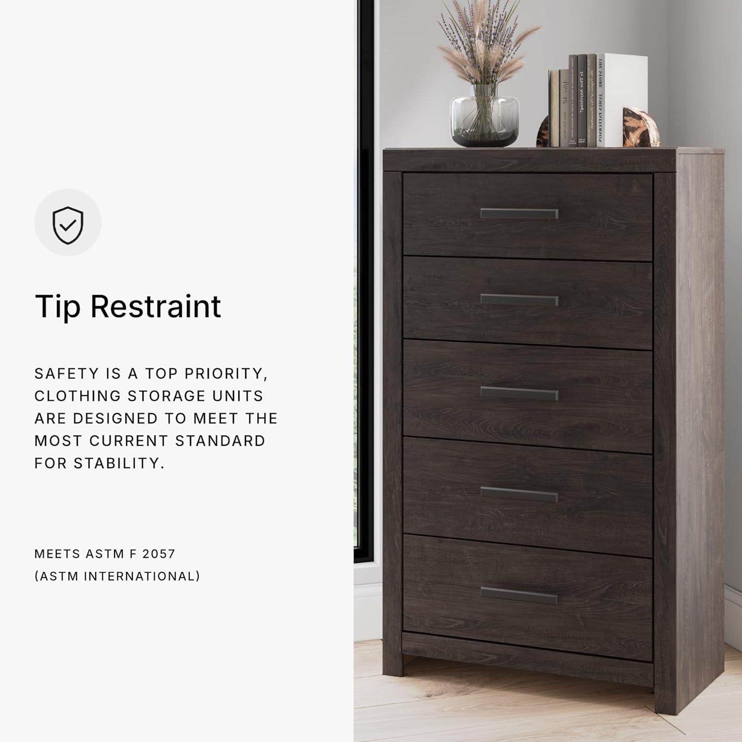 Signature Design by Ashley Prendonea Modern 5-Drawer Chest with Easy Glide and Safety Stop for Bedroom, Gray