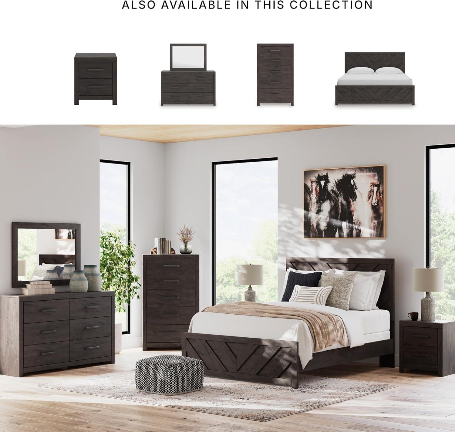 Designed with everyday style in mind, this chest of drawers is a simply chic approach to modern living. A dark charcoal finish blends black and brown undertones, creating a versatile look that effortlessly pairs with your existing pieces. And for must-have function, five smooth-gliding drawers store clothes and linens in charming fashion.