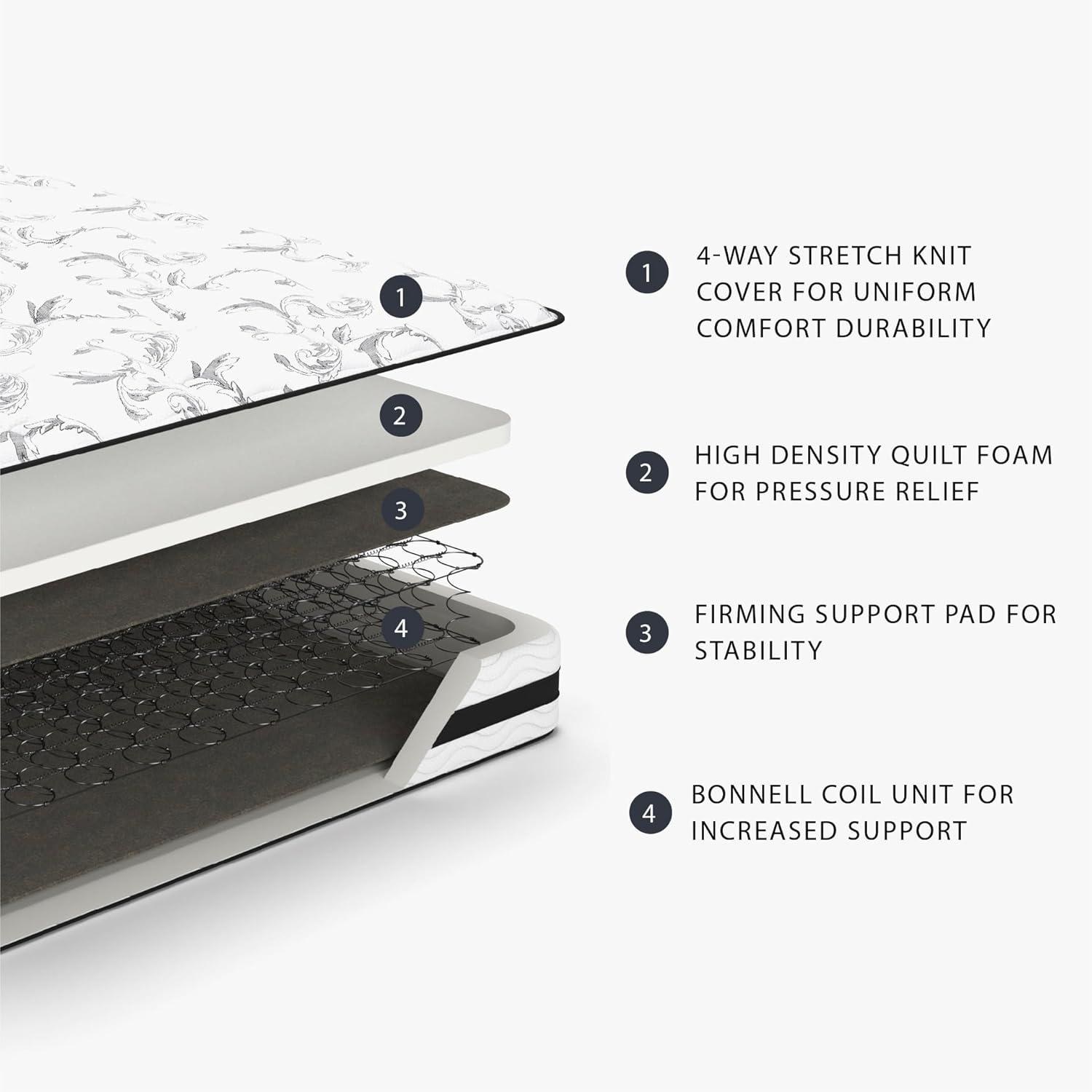 Enjoy endless possibilities for restful sleep with this innerspring queen mattress. Feel the support of a truly traditional coil mattress which contours to your body for a traditional feel. The high-density quilt foam and pad provide the firm feel you love. Plus, this mattress arrives in a box for quick and easy setup. Simply bring it to your room, remove the plastic wrap, and unroll. You spend a large part of your life asleep, so make your bed into a restful haven. With a collection of items that range from plush to super supportive, we have a mattress that will help you sleep soundly — whatever your mattress needs are.