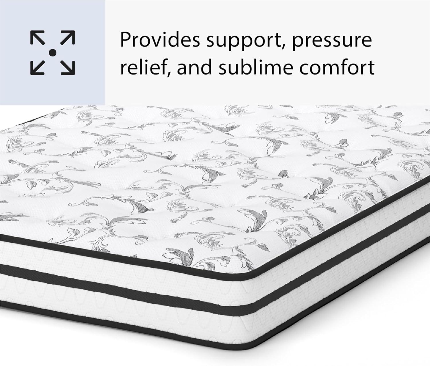 Signature Design by Ashley Queen Size Chime 8 Inch Medium Firm Innerspring Mattress with Pressure Relief Quilt Foam, Fiberglass Free, Mattress In A Box(Queen)