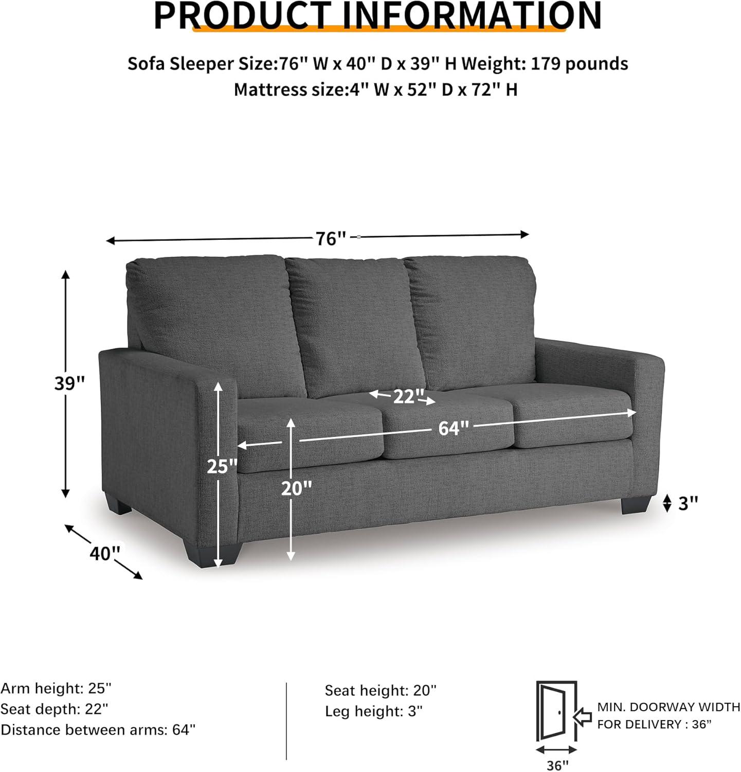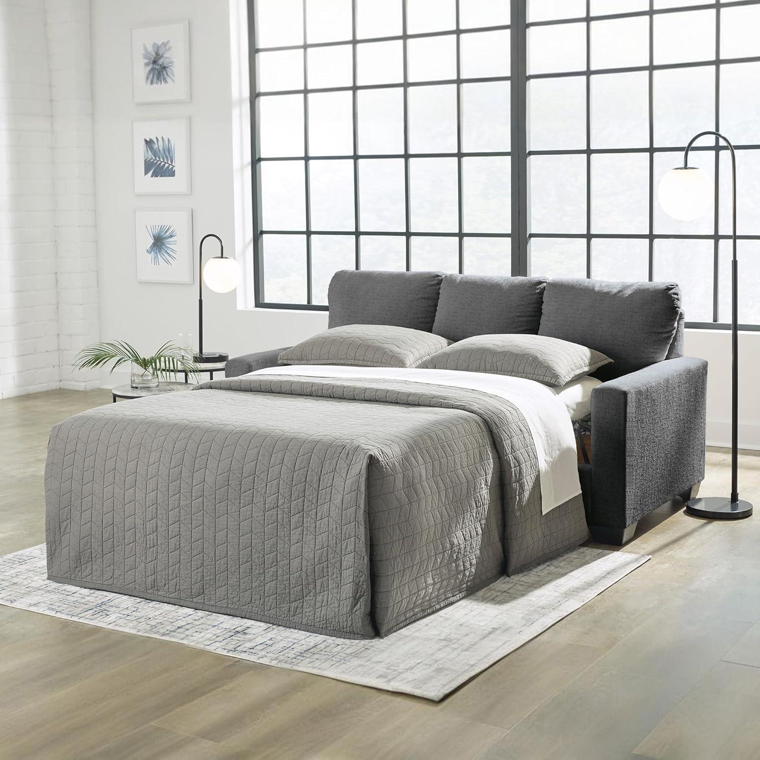 Signature Design by Ashley Rannis Casual 2-in-1 Sofa Sleeper with Folding Gel Memory Foam Mattress, Twin, Gray(Full)