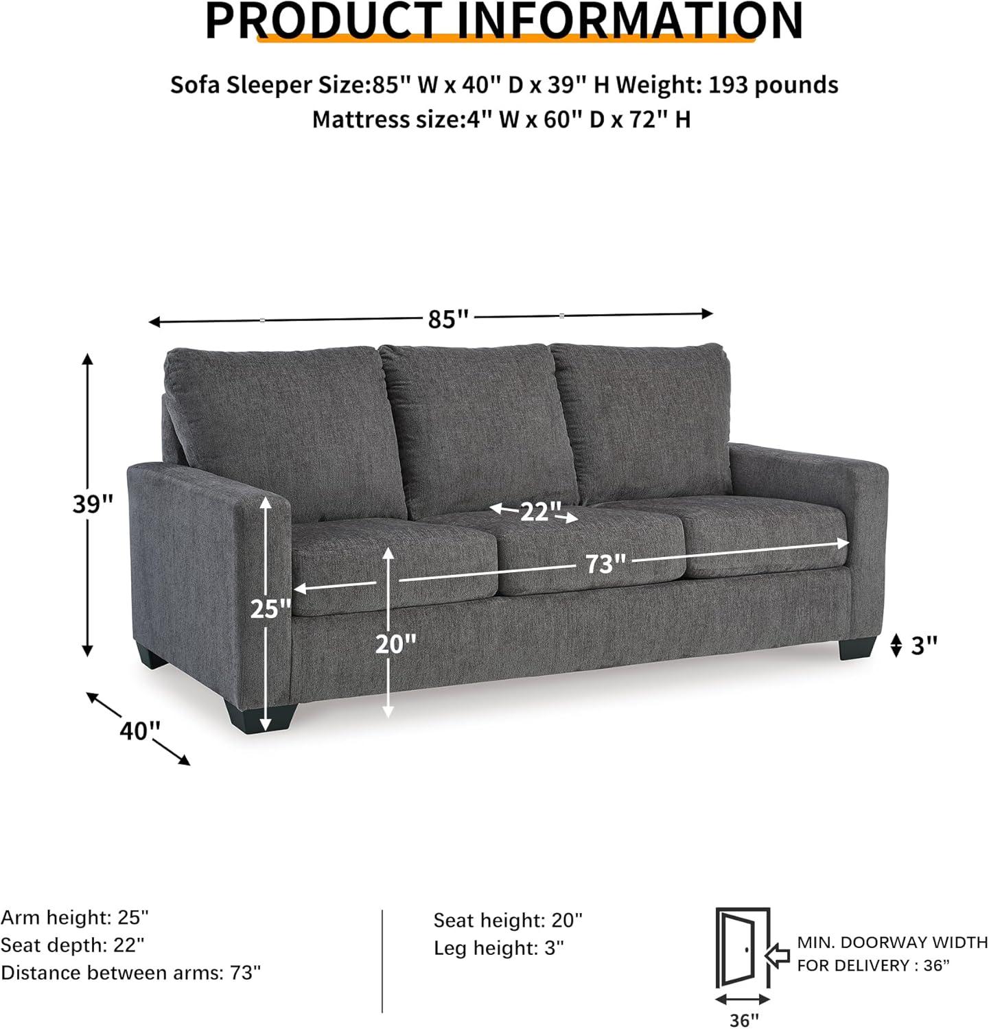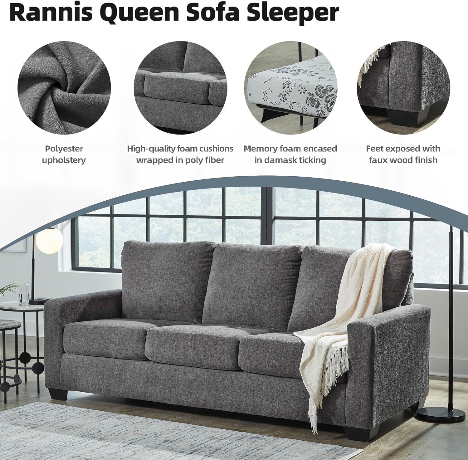 Signature Design by Ashley Rannis Casual 2-in-1 Sofa Sleeper with Folding Gel Memory Foam Mattress, Twin, Gray(Queen)