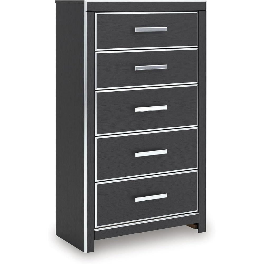 Signature Design by Ashley Ravalori Contemporary 5-Drawer Chest with Wood Finish, Black(Black)