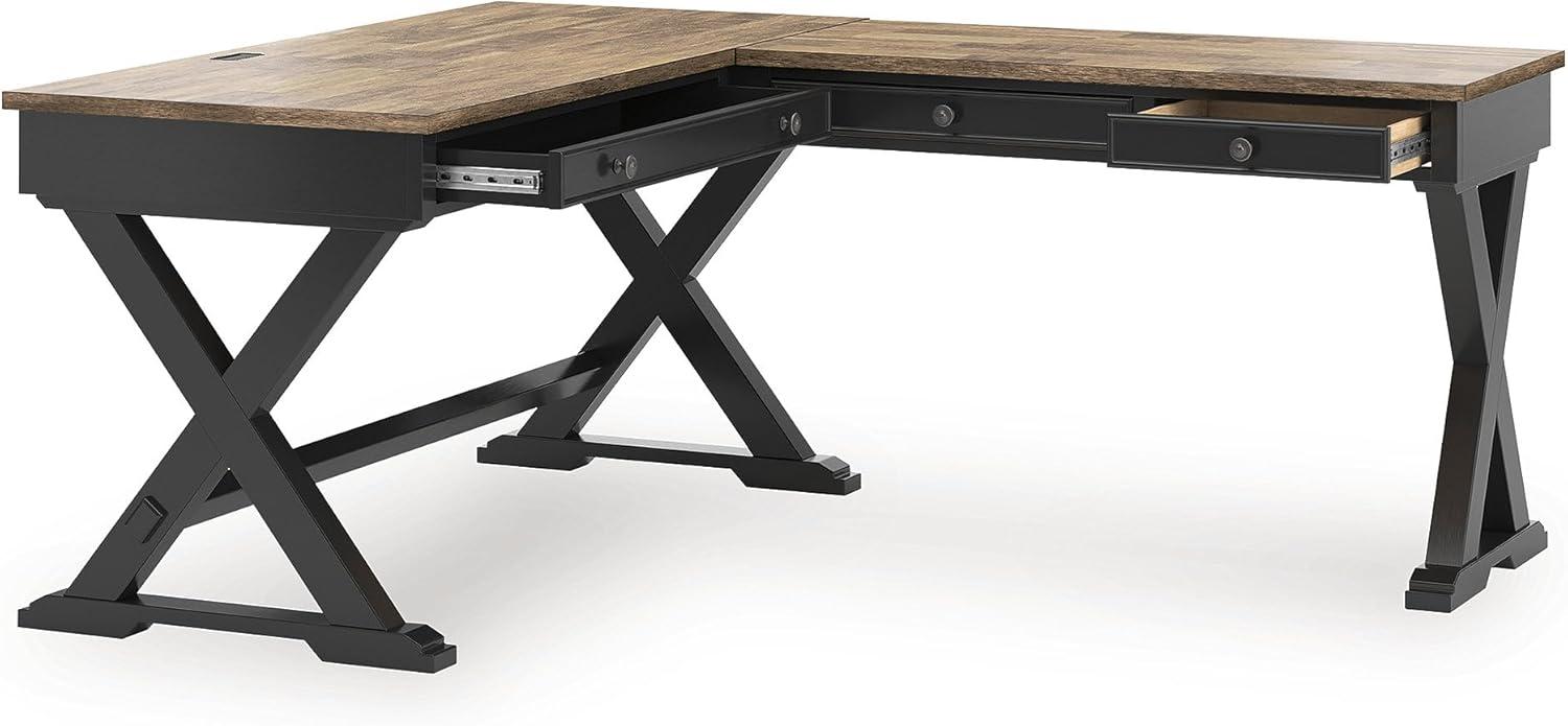 Signature Design by Ashley Realyn French Country 60″ Home Office Lift Top Desk with USB Charging, Chipped White(Brown/Black)
