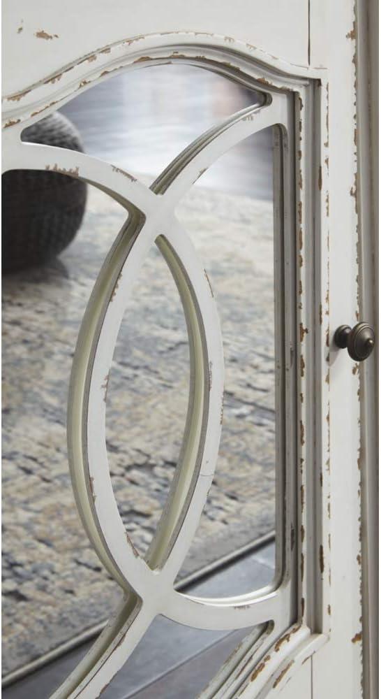 Elevating the art of traditional cottage styling, this TV stand with fireplace insert is beautifully in tune with your taste. Its antiqued two-tone aesthetic blends a chipped white with a distressed wood-tone top for added charm. The cabinet doors, with decorative fretwork over mirrored glass, add a lovely twist. And what really turns up the heat: an electric infrared fireplace insert with faux firebrick surround that operates with or without infrared heat. With the touch of a button, adjust the temperature and the flame brightness, and set the timer for long-lasting enjoyment.