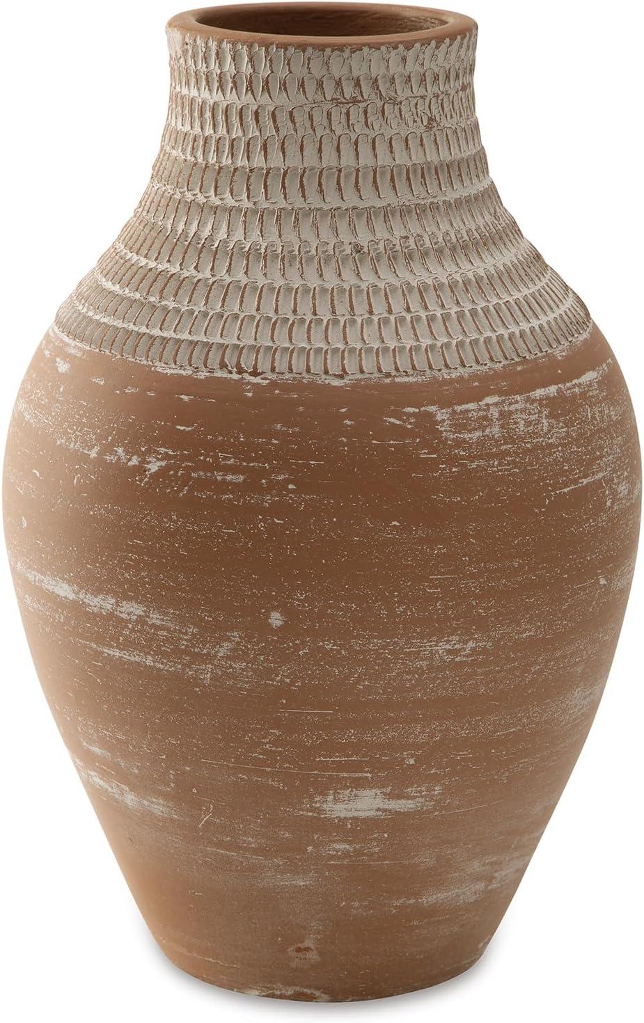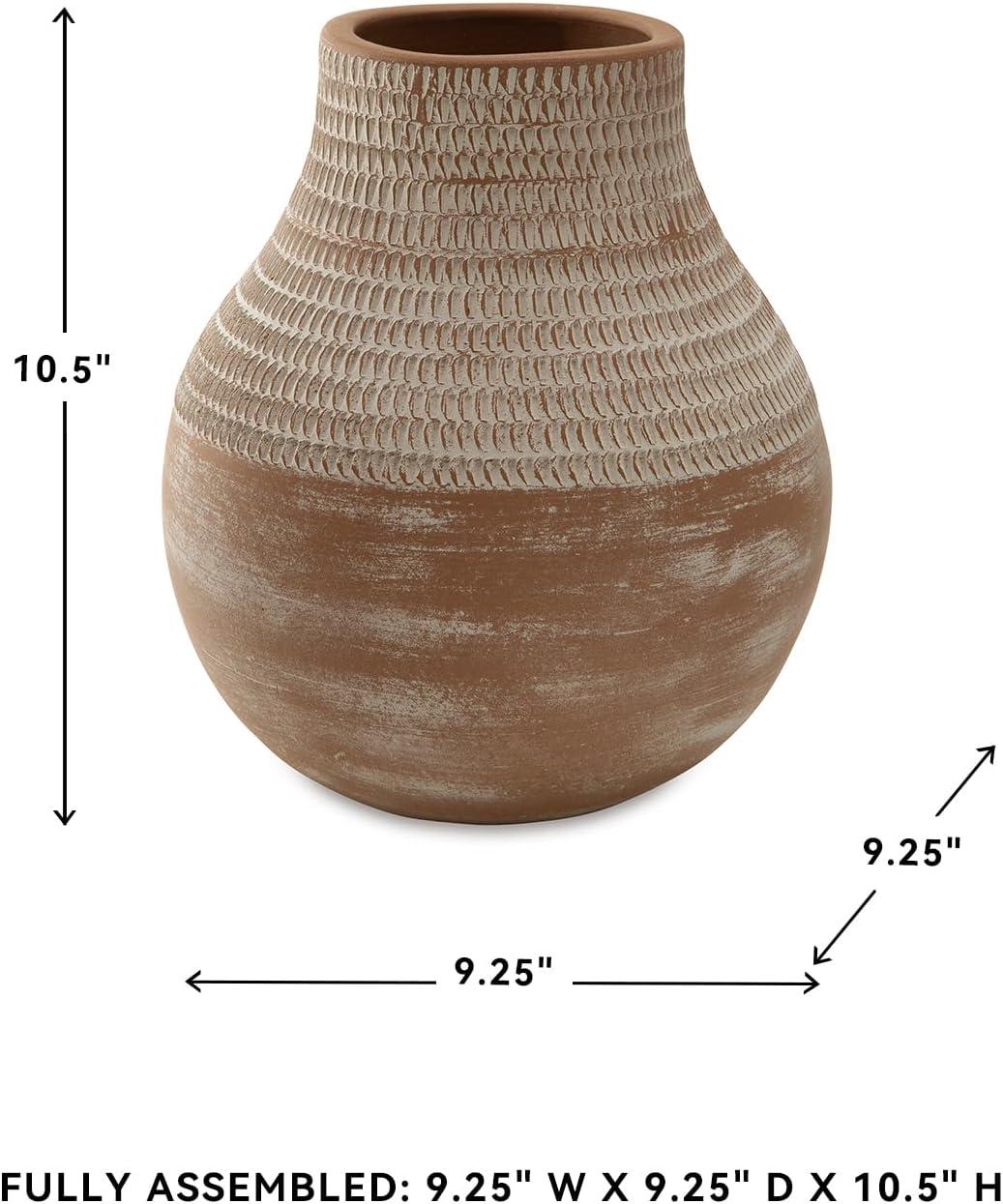 Signature Design by Ashley Reclove Casual Indoor Abstract Terra Cotta Tabletop Vase, White & Light Brown(White & Light Brown)