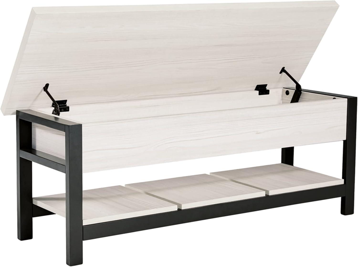 Signature Design by Ashley Rhyson Modern Storage Bench, Black & White(White)