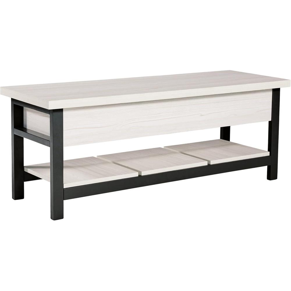 Seating with style and storage – what more could you need? This storage bench has a hinged seat and plank shelf, making it the perfect multi-use piece. The white wood grain effect lends a casual touch, while the black finished legs and supports create a dynamic contrast. The trusted source for stylish furniture, lighting, rugs, accessories and mattresses for every taste and budget, our wide assortment brings your space to life with furniture and decor that show off your style personality. With unmatched prices and quality, we're your one-stop destination for all things home. You're sure to find whatever you need to bring your home’s unique look to life. And we go the extra mile to package, protect and deliver your purchase in a timely manner.