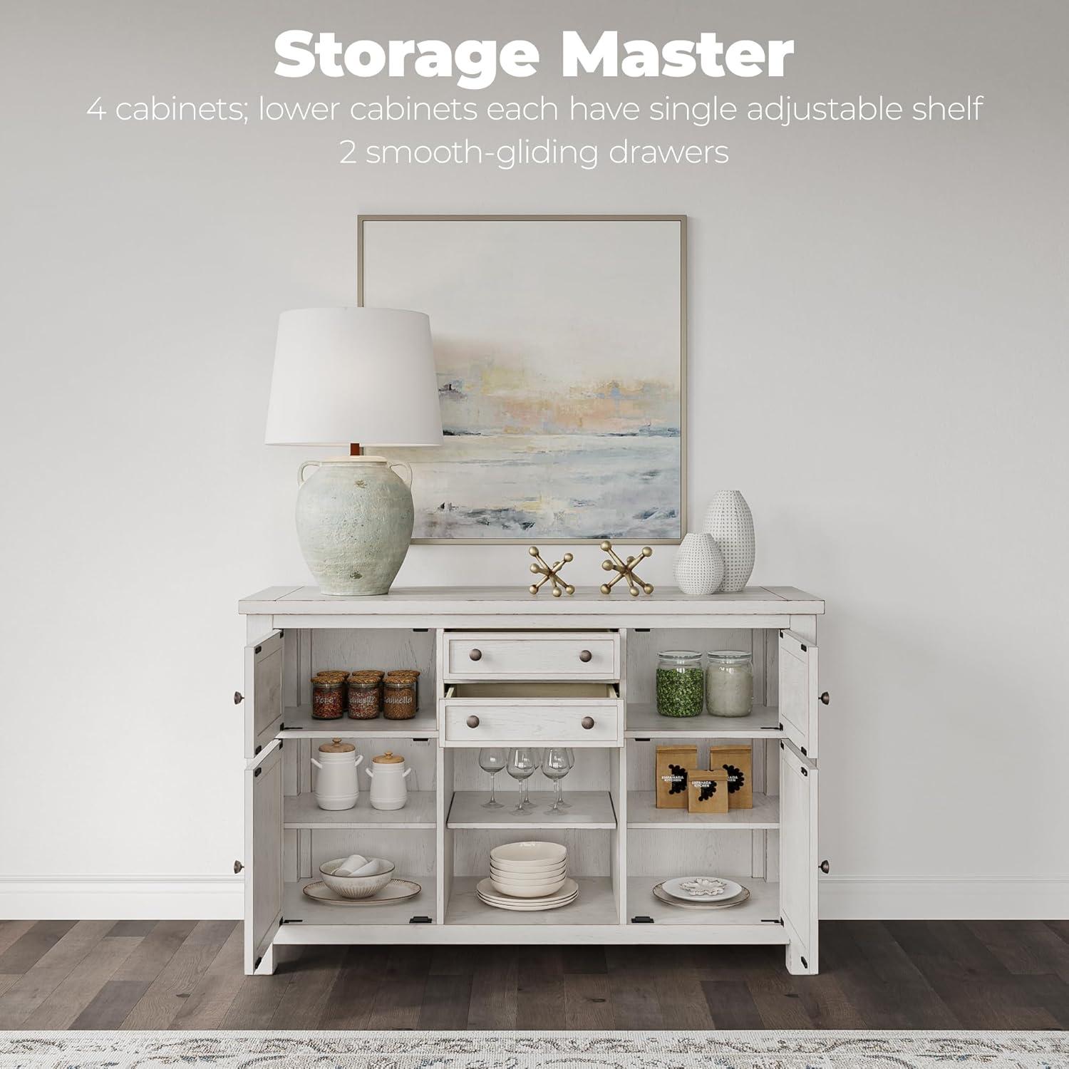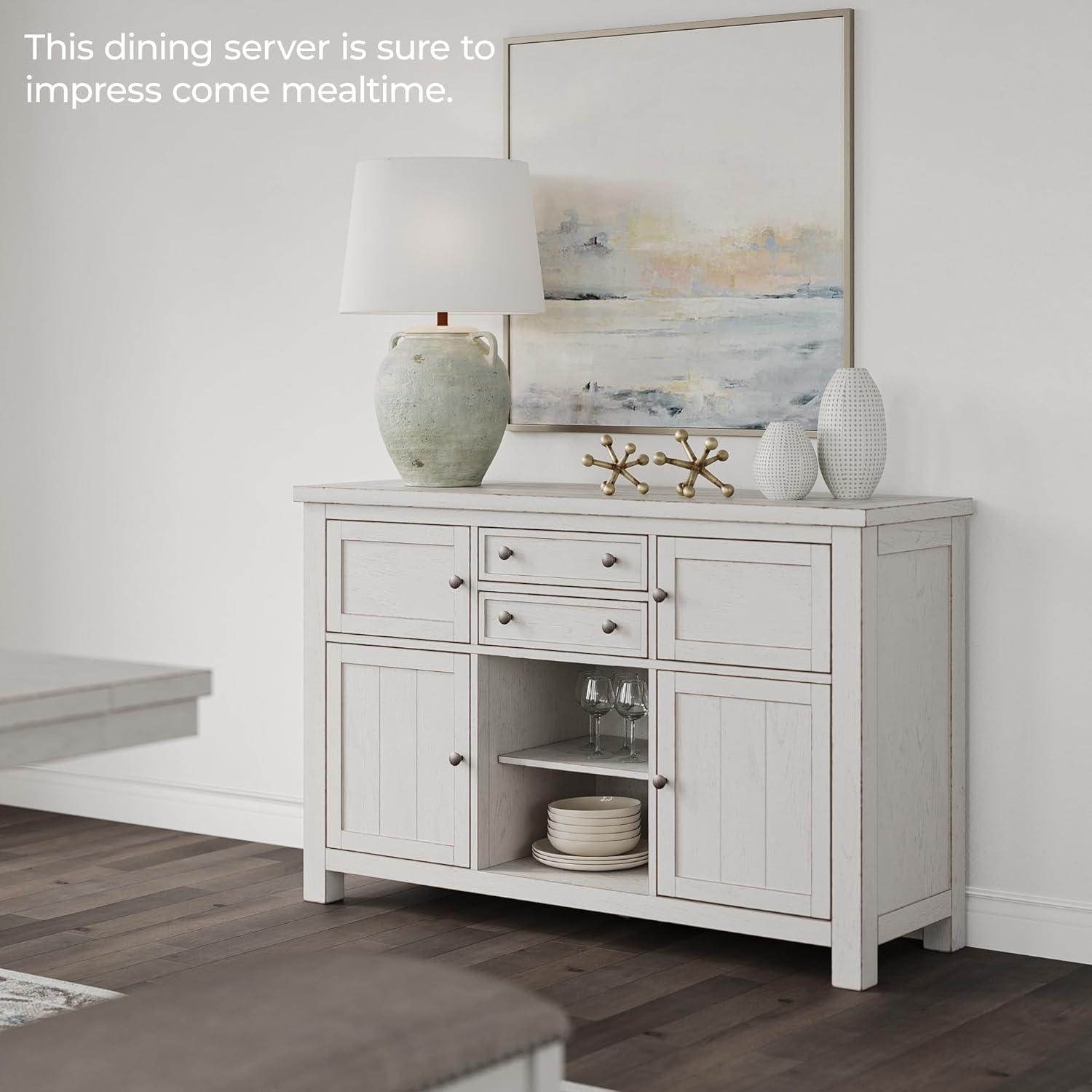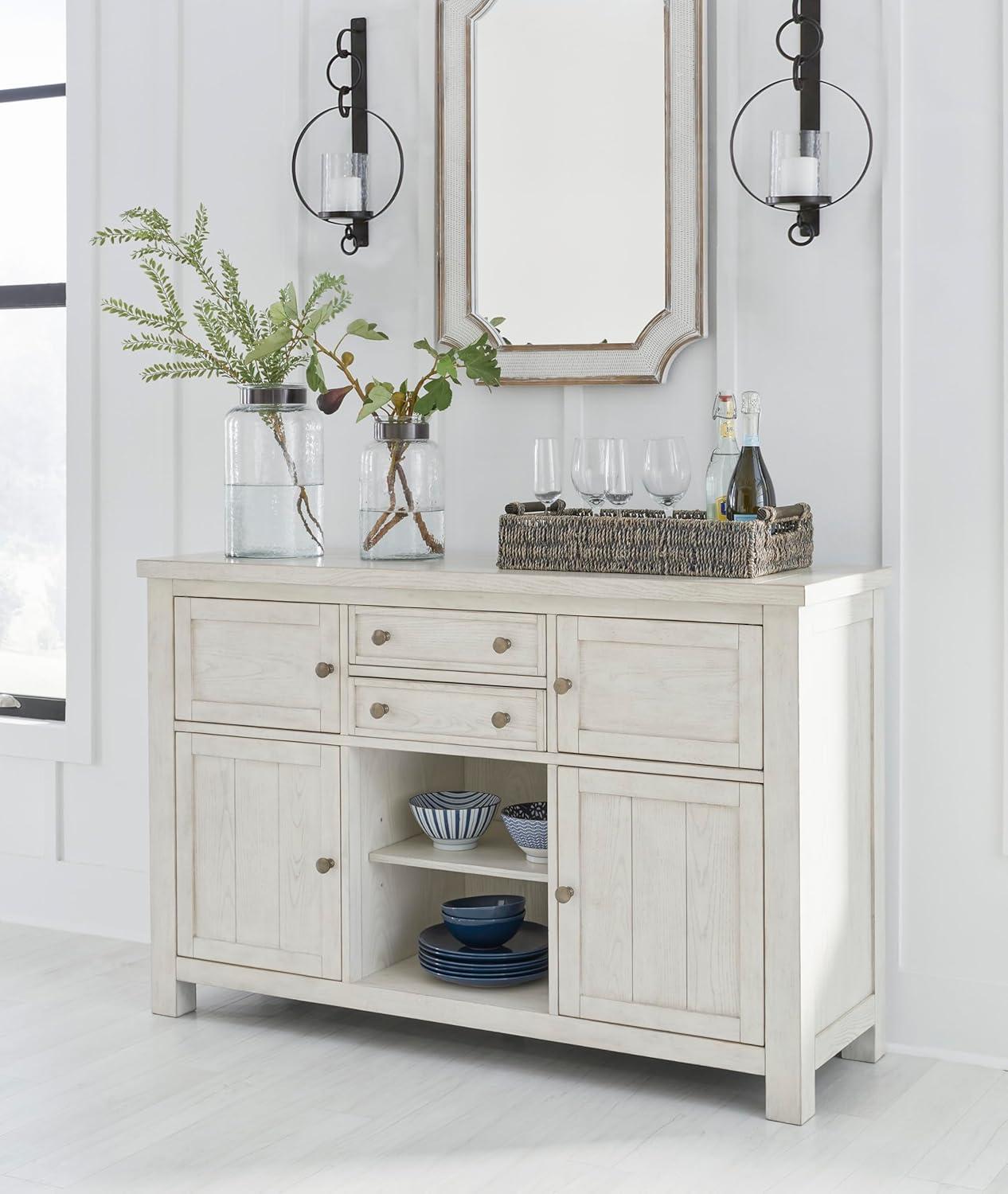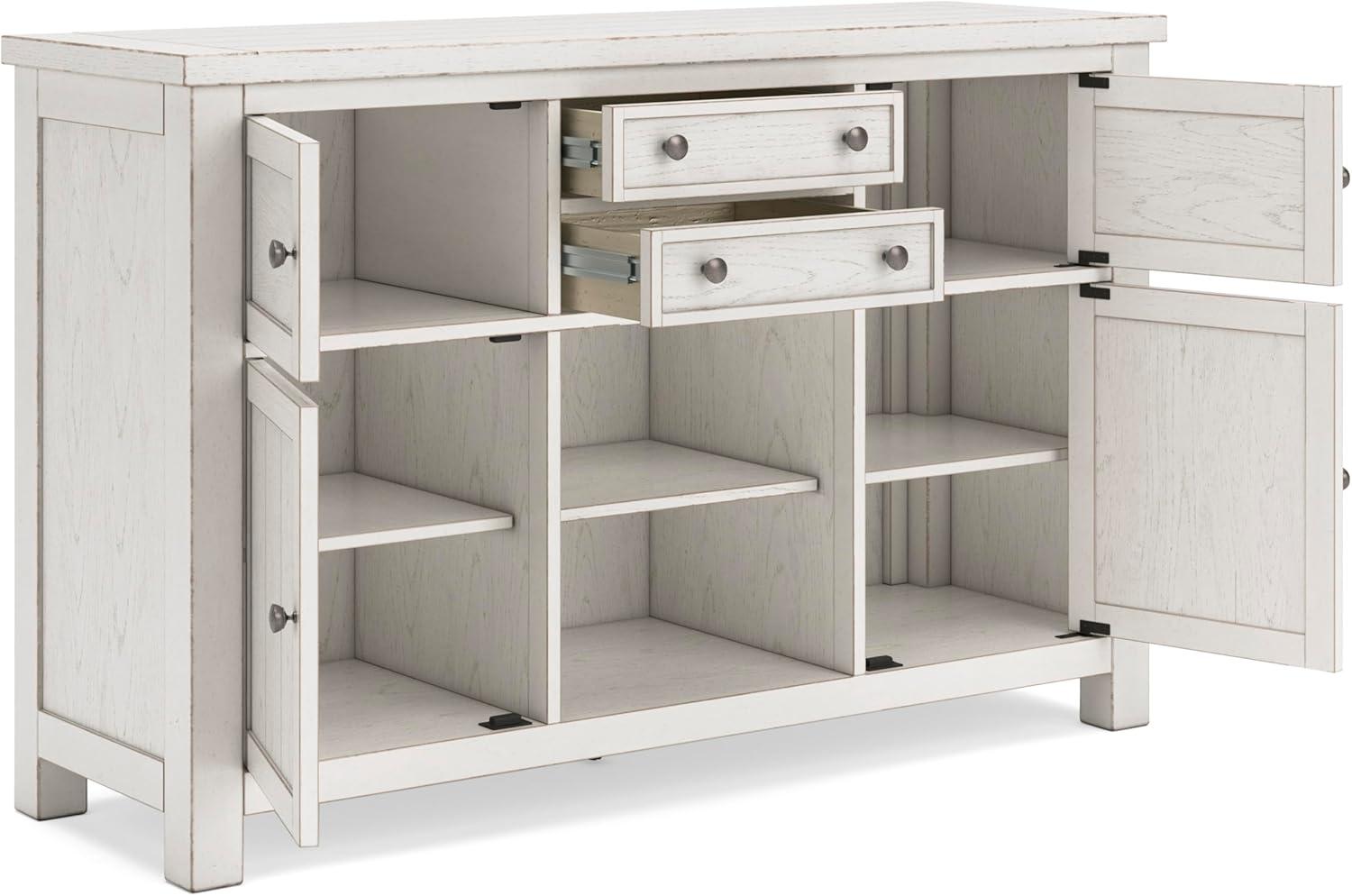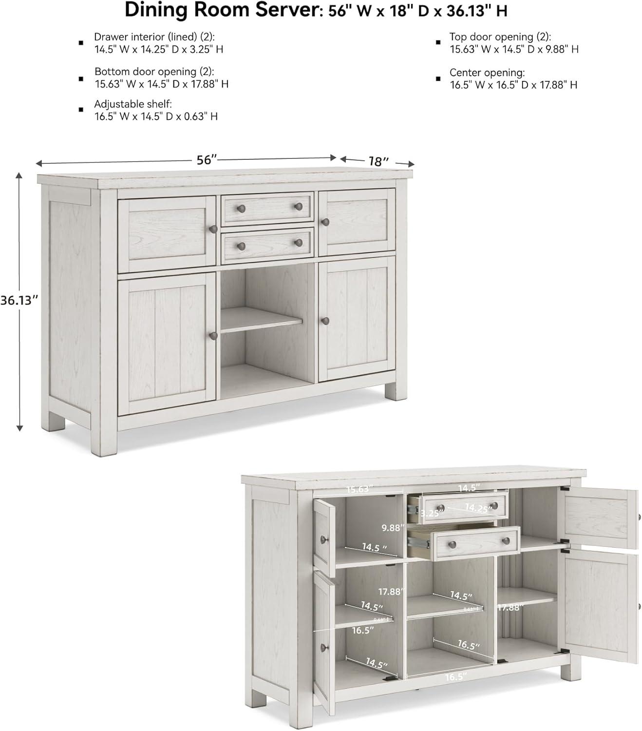 Signature Design by Ashley Robbinsdale Casual 4-Door Dining Server with Adjustable Shelves and Felt-Lined Drawers, White(White)