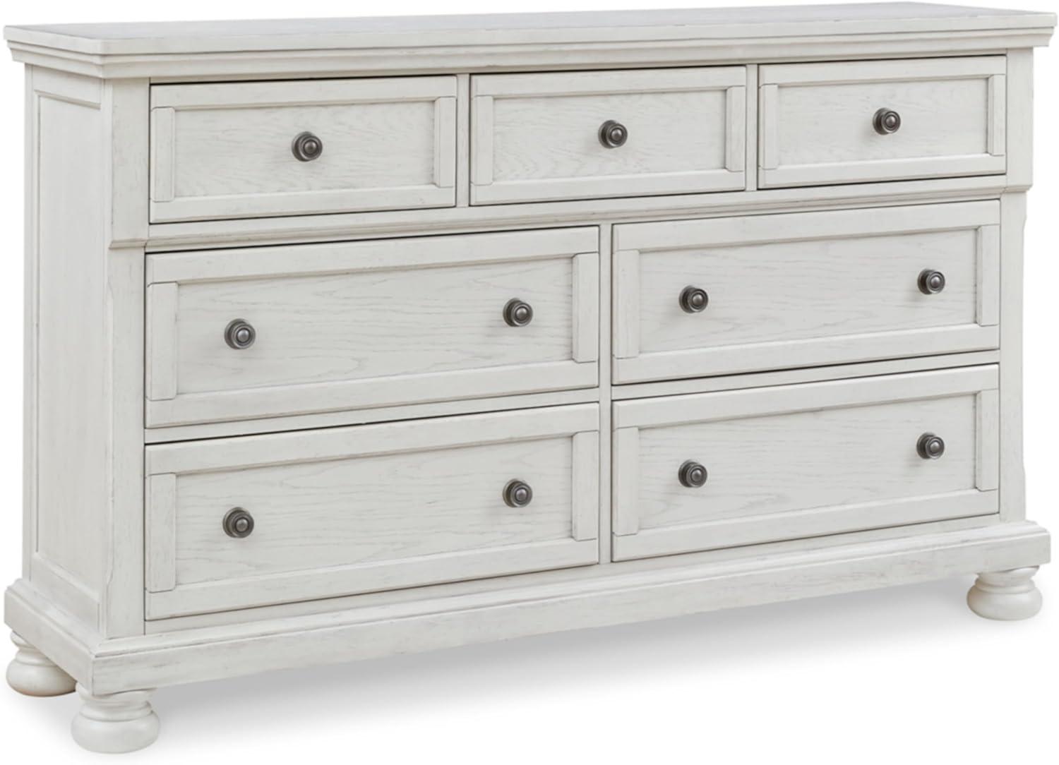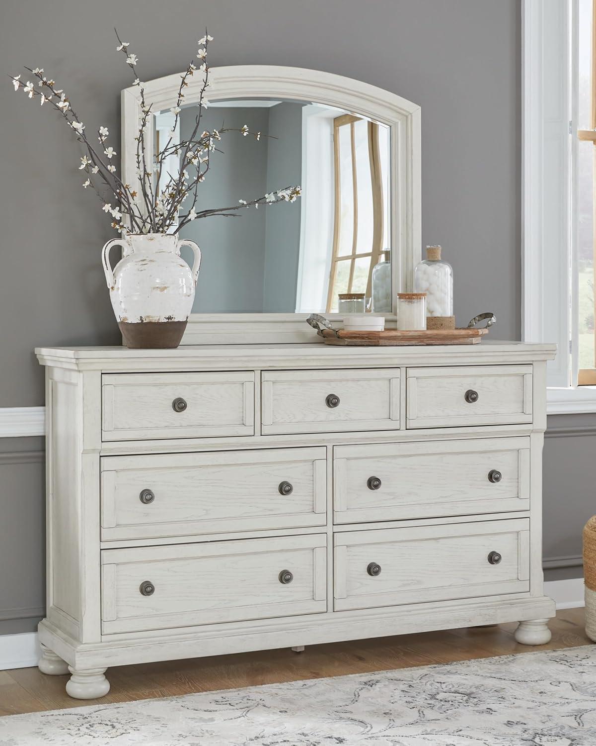 Signature Design by Ashley Robbinsdale Casual Smooth-Gliding 7-Drawer Dresser and Mirror with Safety Stop, Felt-Lined Top Drawers and Pull-Out Tray, White
