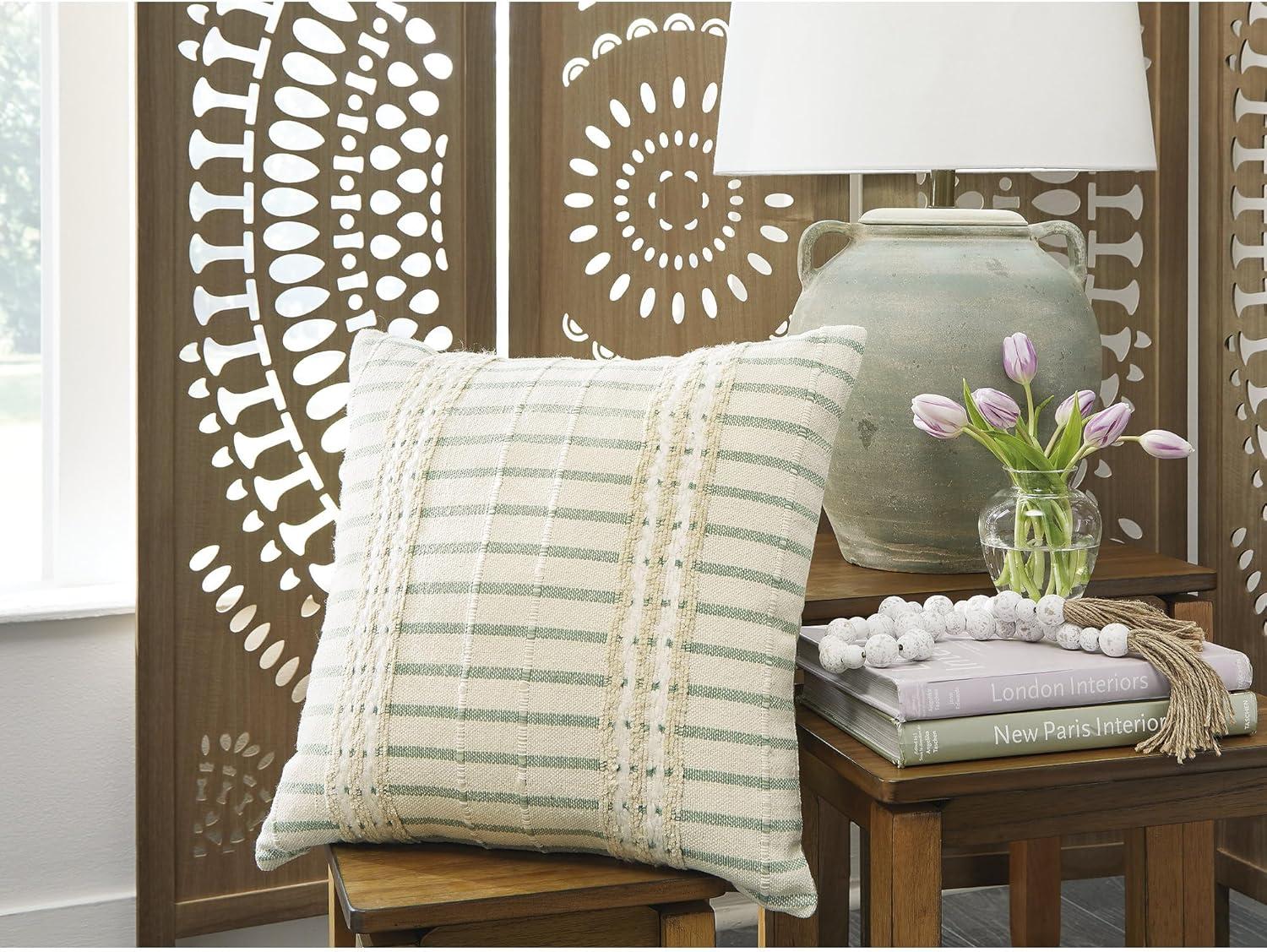 Signature Design by Ashley Rowton Casual Indoor Striped 20 x 20 Inches Pillow with Zipper Closure, Green & White